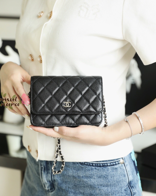 [스페셜오더]CHANEL-AP1649 샤넬 블랙 캐비어 실버 메탈 WOC 미니 체인 지갑