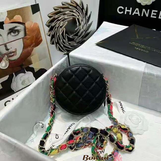 [스페셜오더]CHANEL-AP2055 샤넬 블랙 램스킨 CC로고 리본 체인 원형 미니 백
