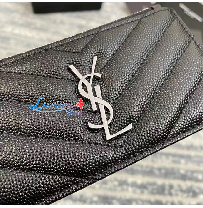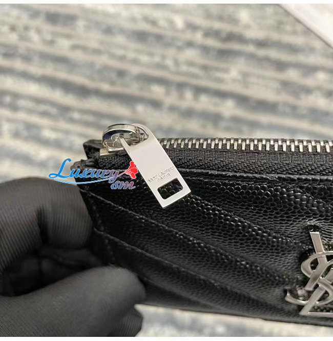 [스페셜오더]SAINT LAURENT-607915 생 로랑 블랙 모노그램 프라그망 실버 메탈 지퍼 카드 케이스