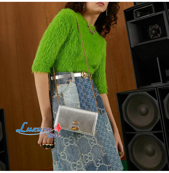 [스페셜오더]GUCC*-696817 8106 구찌 실버 구찌 다이애나 뱀부 미니백