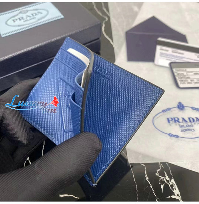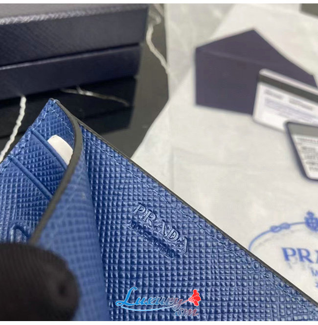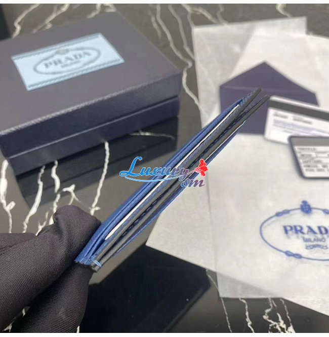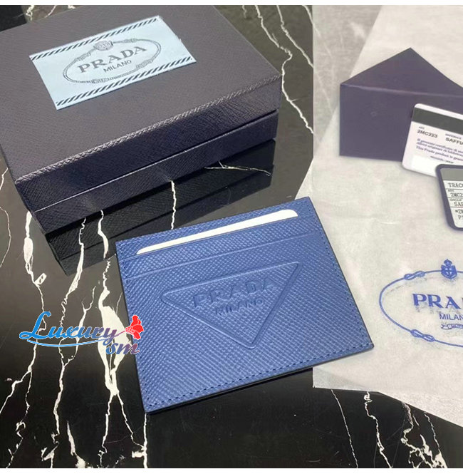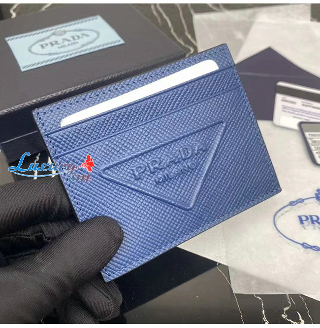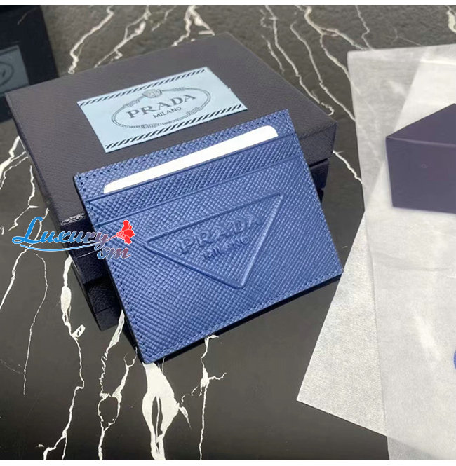 [스페셜오더]PRADA-2MC223 프라다 블루 엠보싱 트라이앵글 로고 카드 홀더