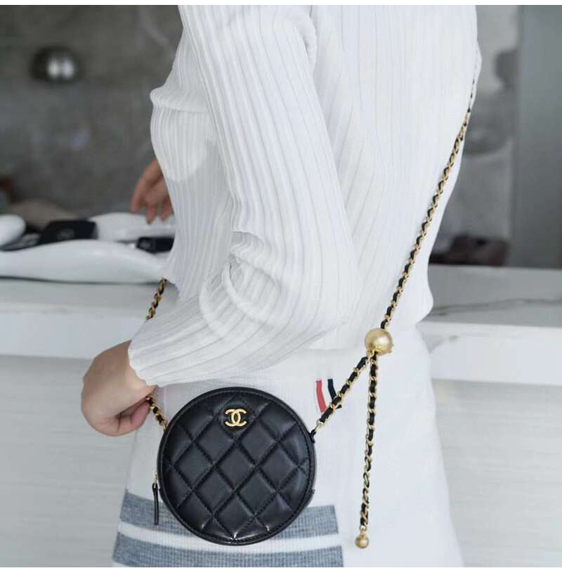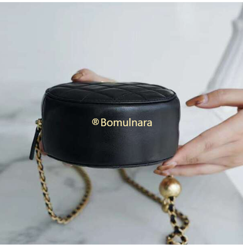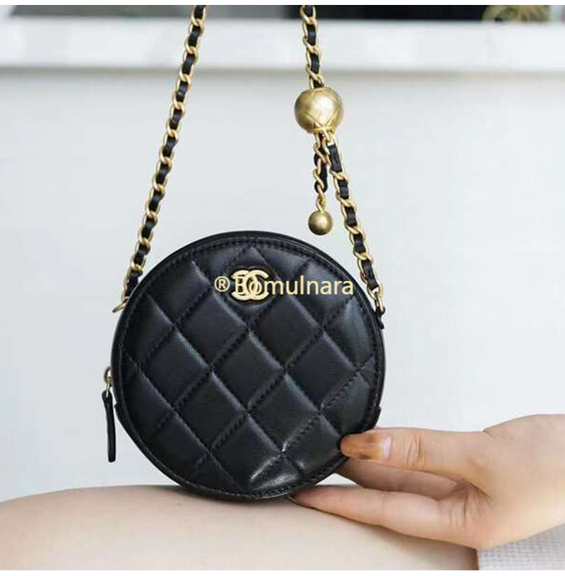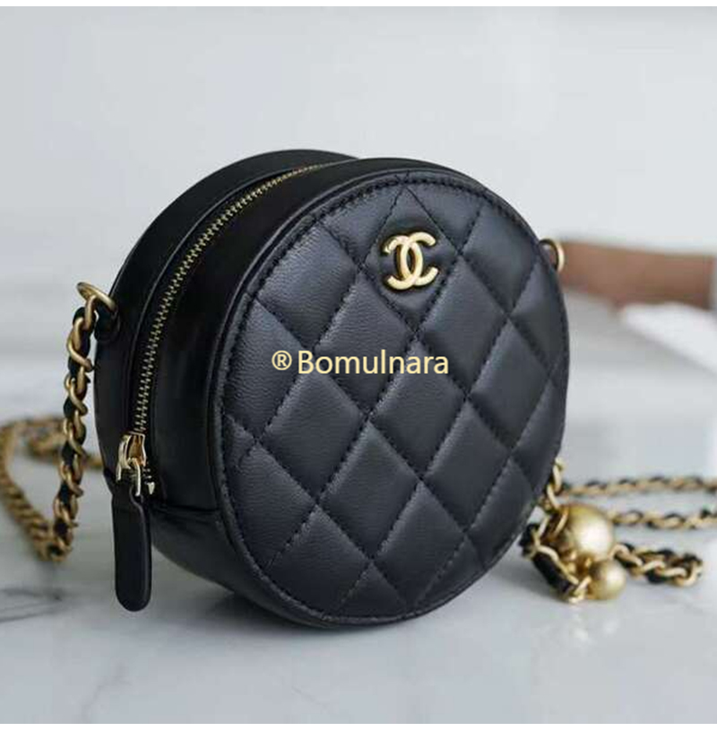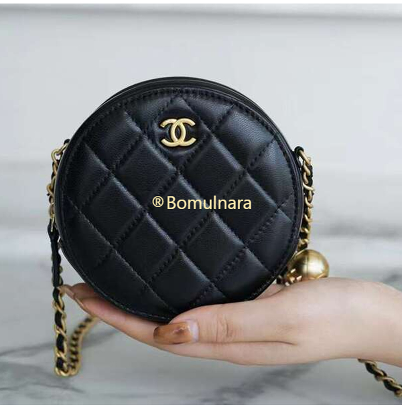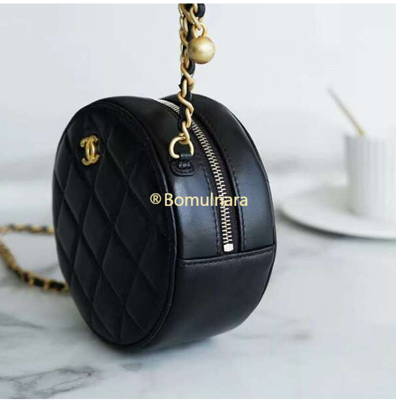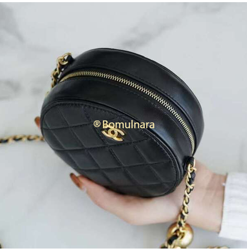 [스페셜오더]CHANEL-AP1449 샤넬 21SS 블랙 퀄팅 램스킨 골드볼 라운드 체인 클러치