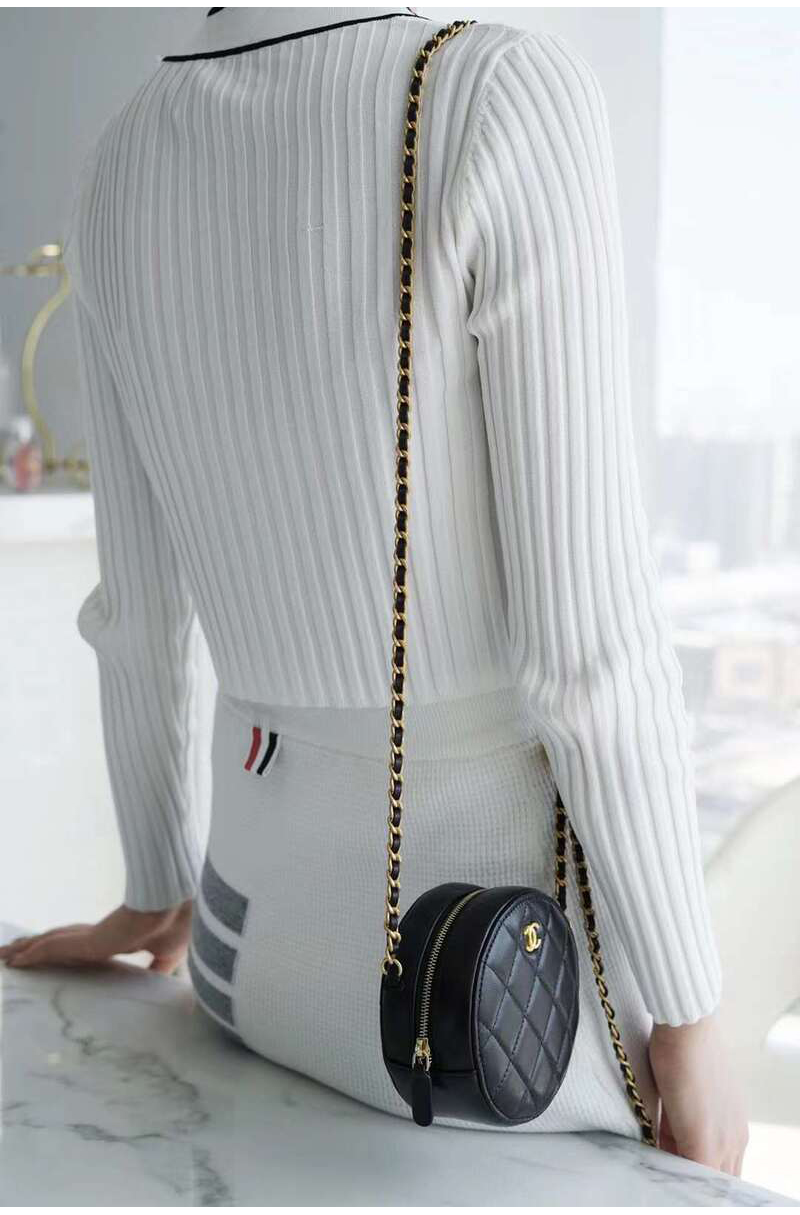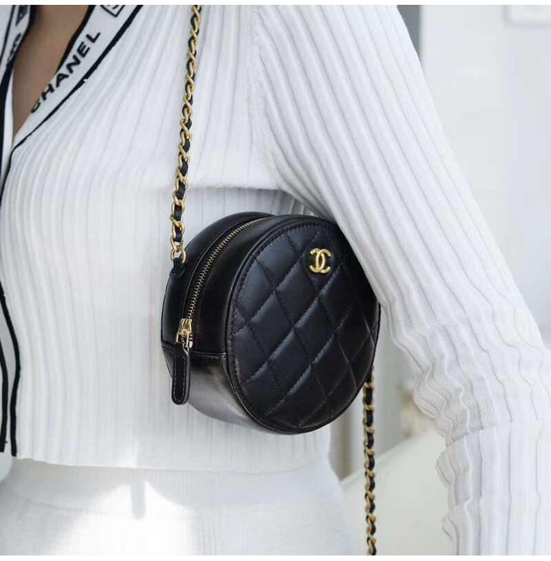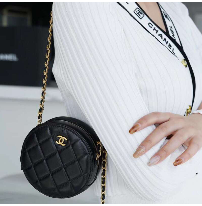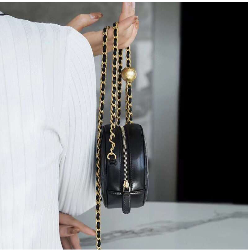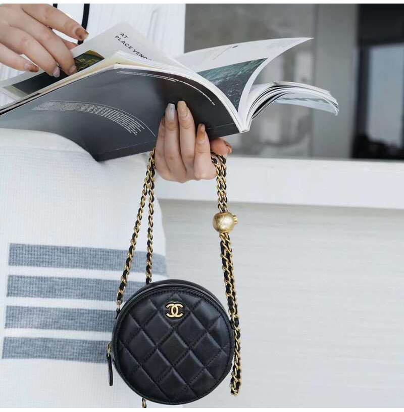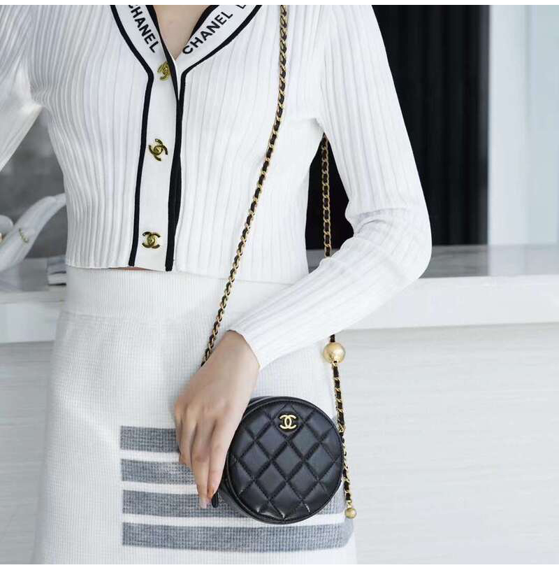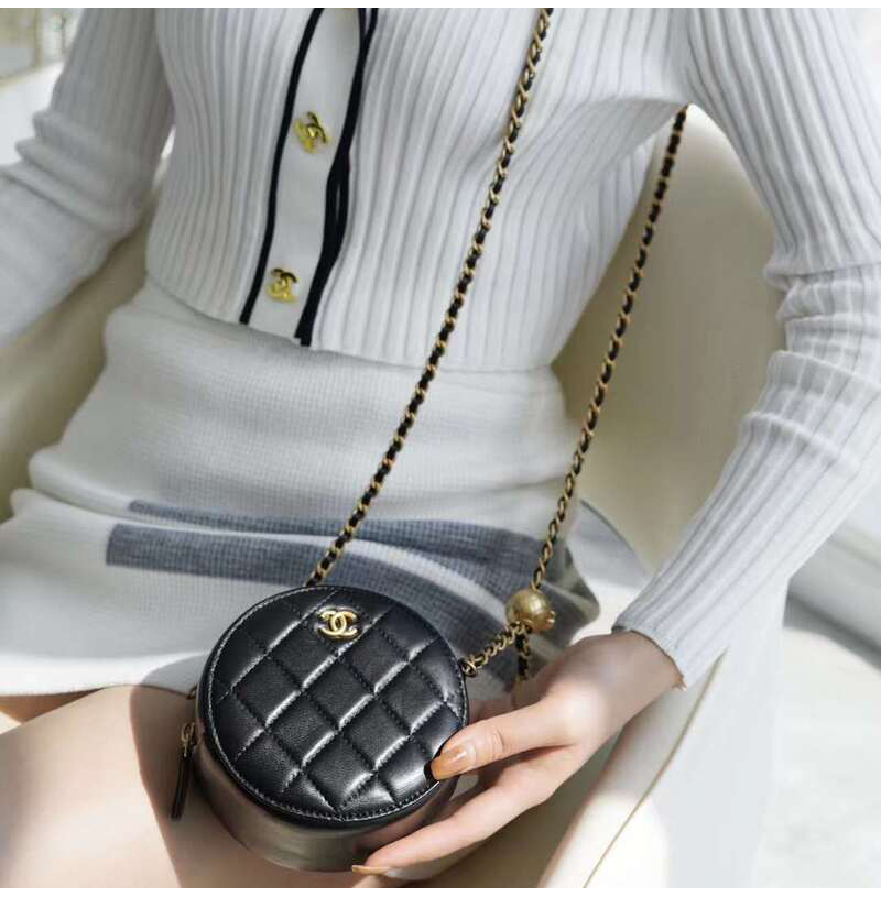 [스페셜오더]CHANEL-AP1449 샤넬 21SS 블랙 퀄팅 램스킨 골드볼 라운드 체인 클러치