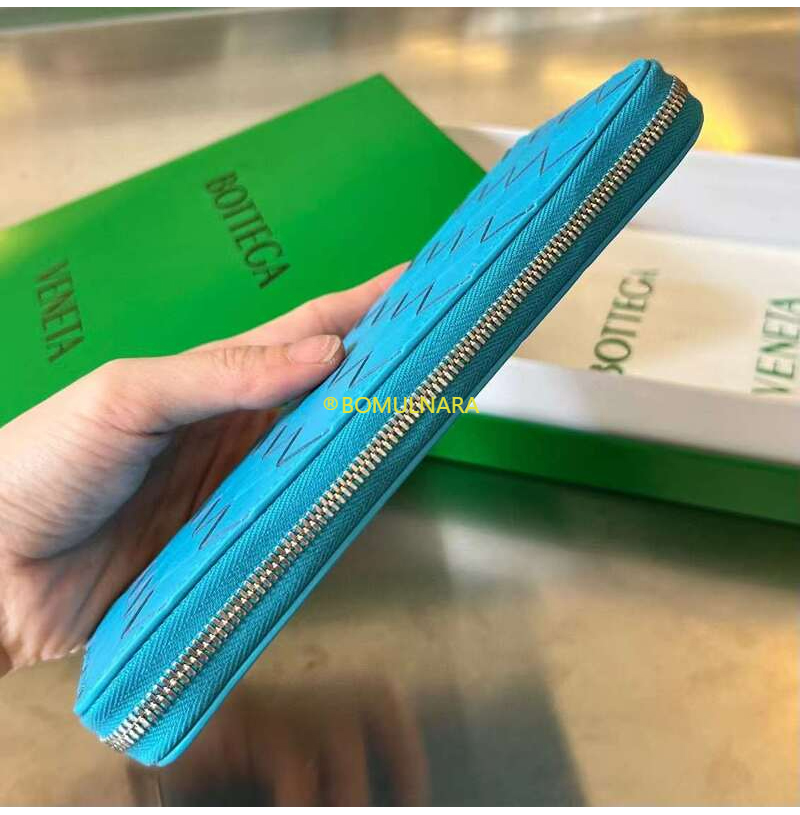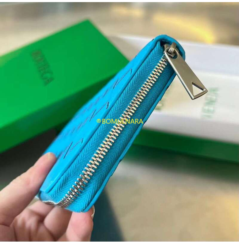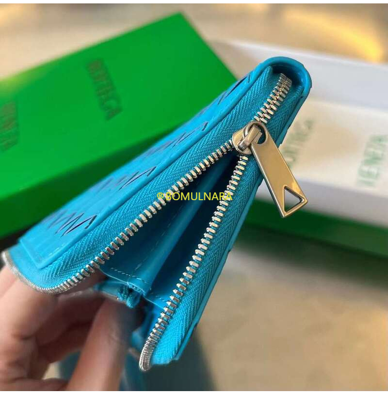 [스페셜오더]BOTTEGA VENETA-593217 보테가 베네타 블루 인트레치아토 지퍼 어라운드 지갑