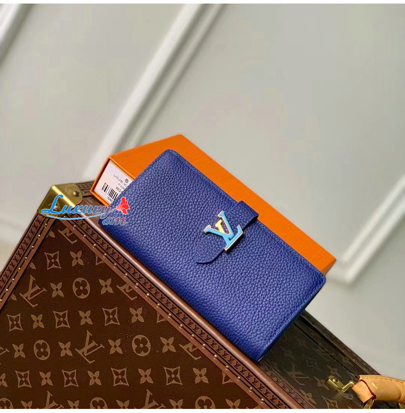 [스페셜오더]LOUIS VUITTON-M82441 루이비통 블루 토뤼옹 가죽 LV 버티컬 월릿