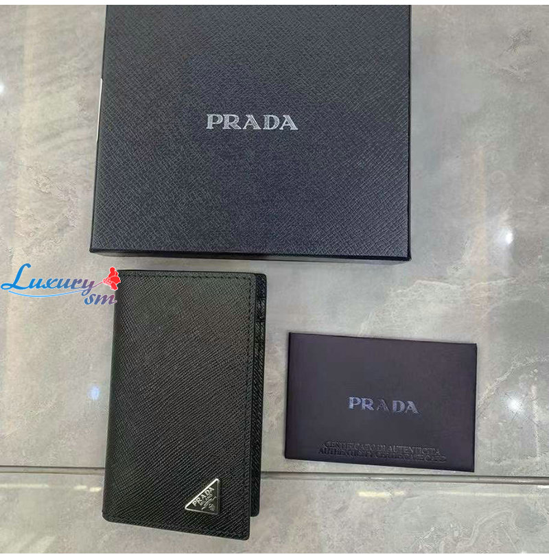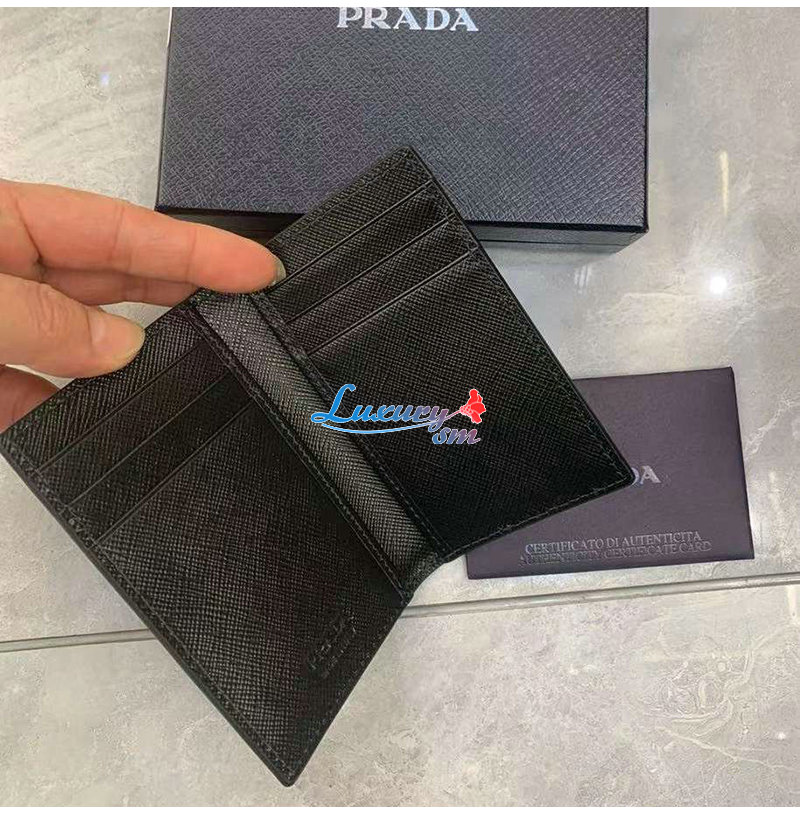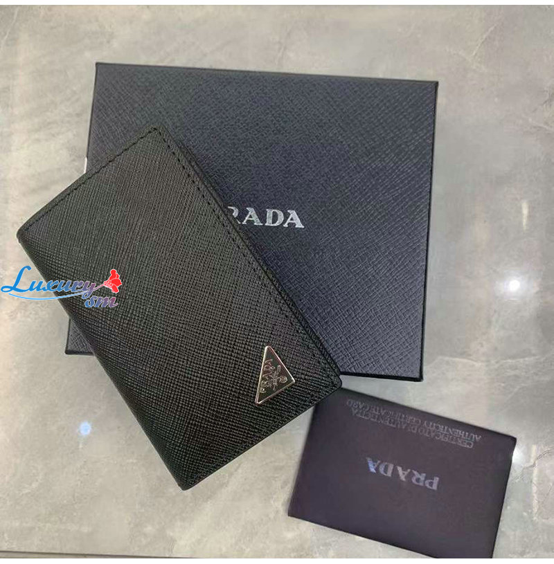 [스페셜오더]PRADA-2MC101 프라다 블랙 트라이앵글 로고 사피아노 가죽 카드 홀더