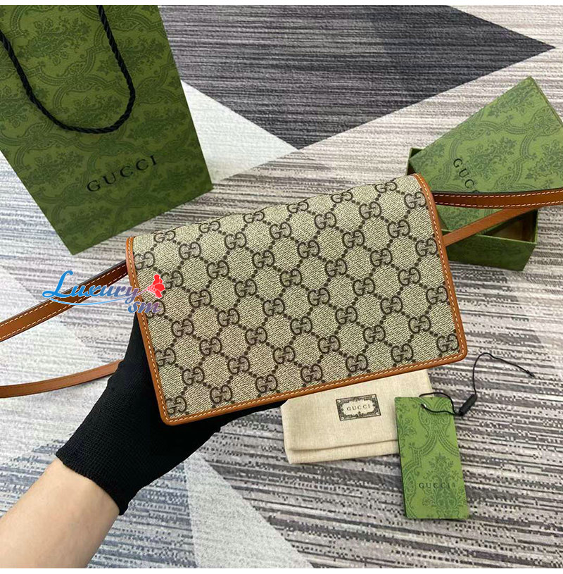 [스페셜오더]GUCCI-820688 9758 구찌 브라운 GG 엠블럼 수퍼 미니 숄더백
