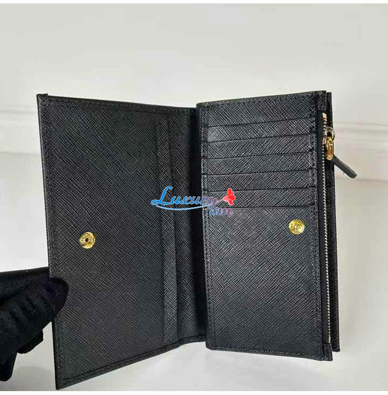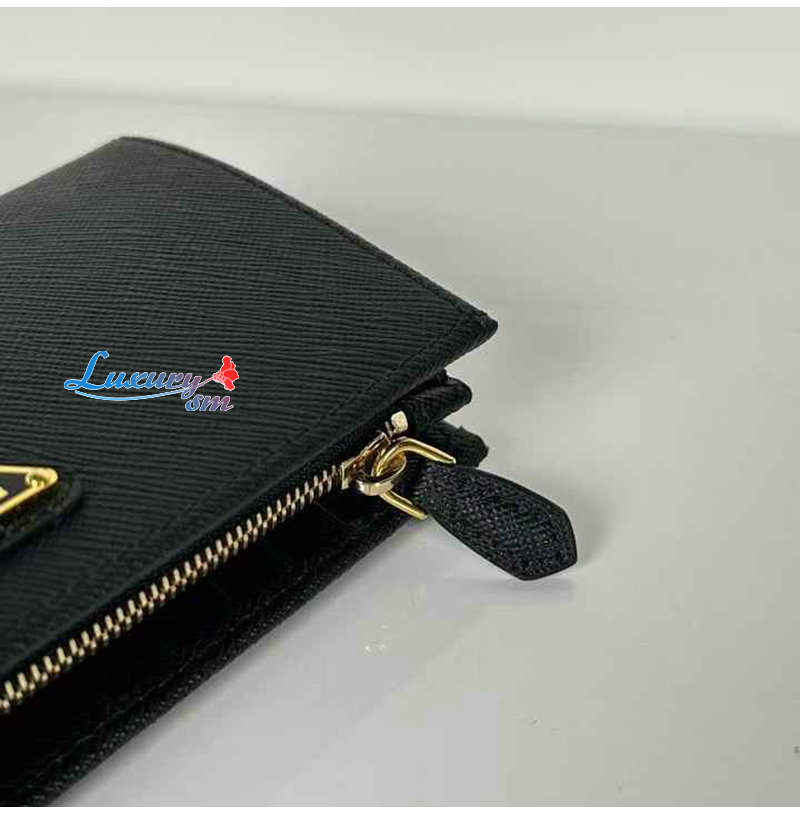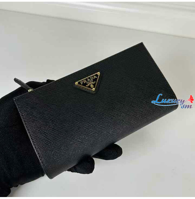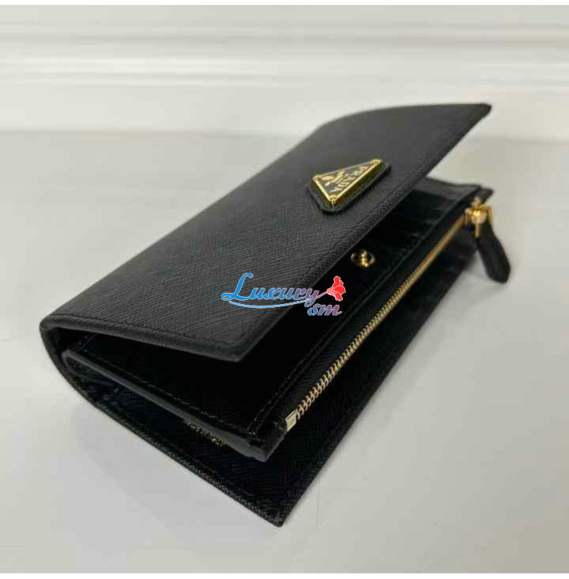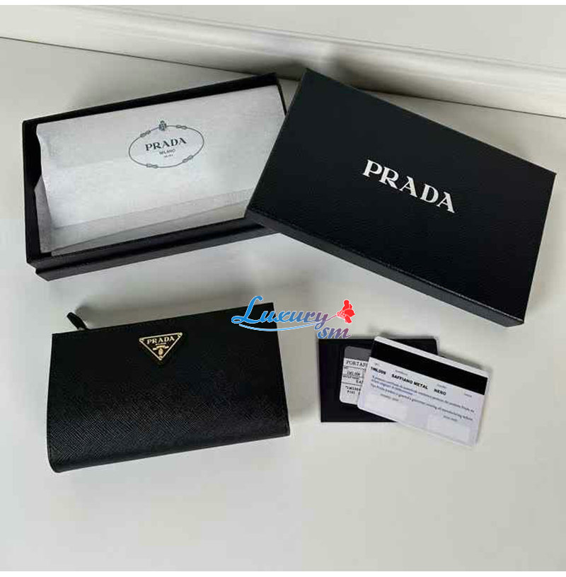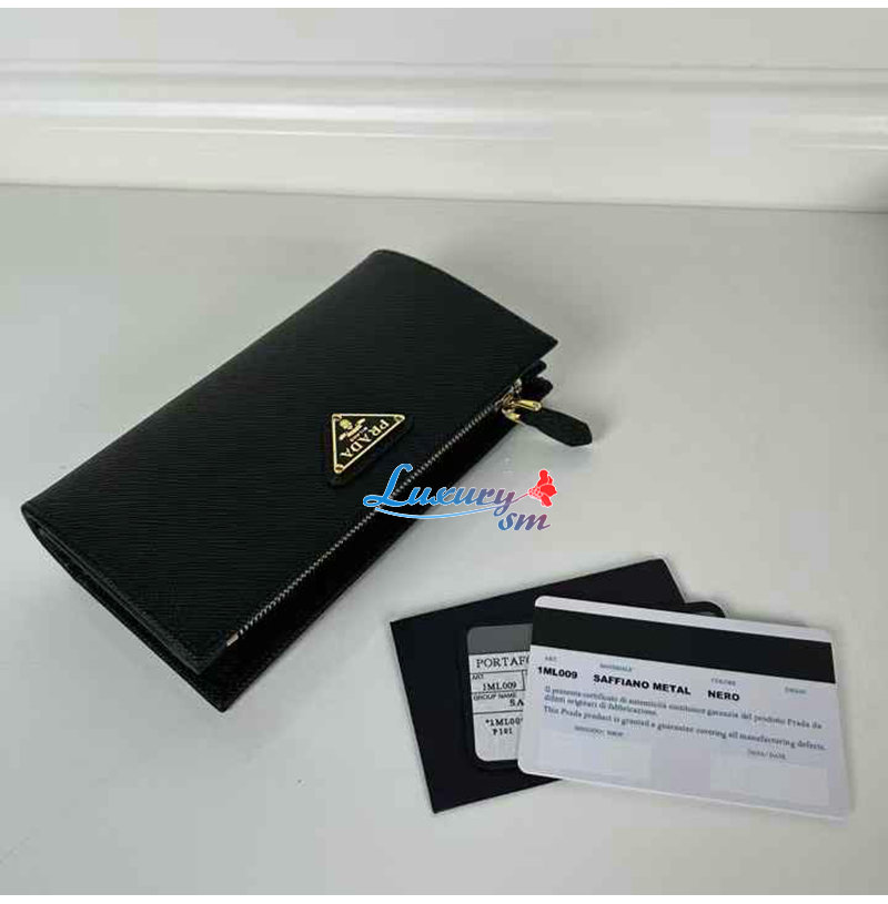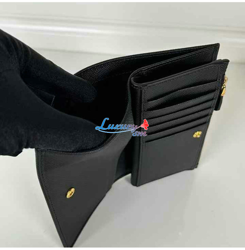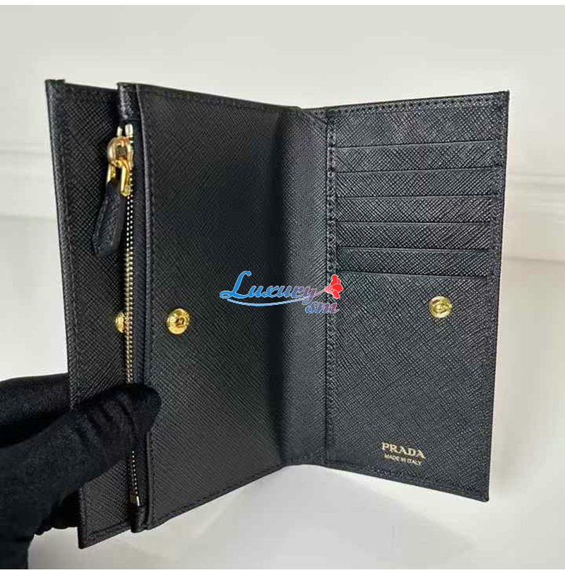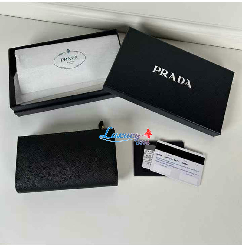[스페셜오더]PRADA-1ML009 프라다 블랙 금장 사피아노 트라이앵글 로고 중지갑