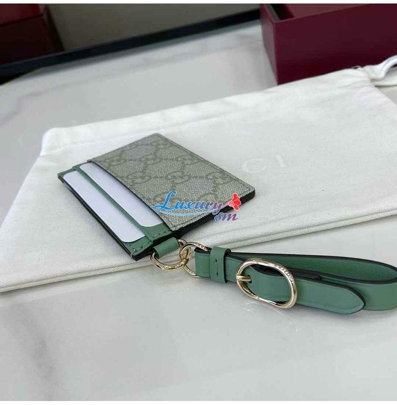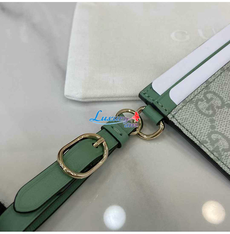 [스페셜오더]GUCCI-819121 8458 구찌 세이지 그린 GG 엠블럼 스트랩 카드 케이스