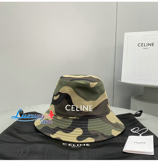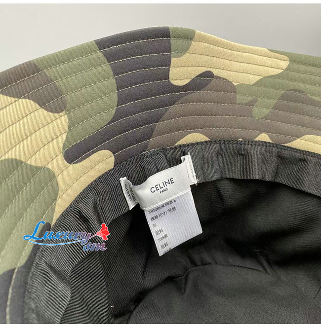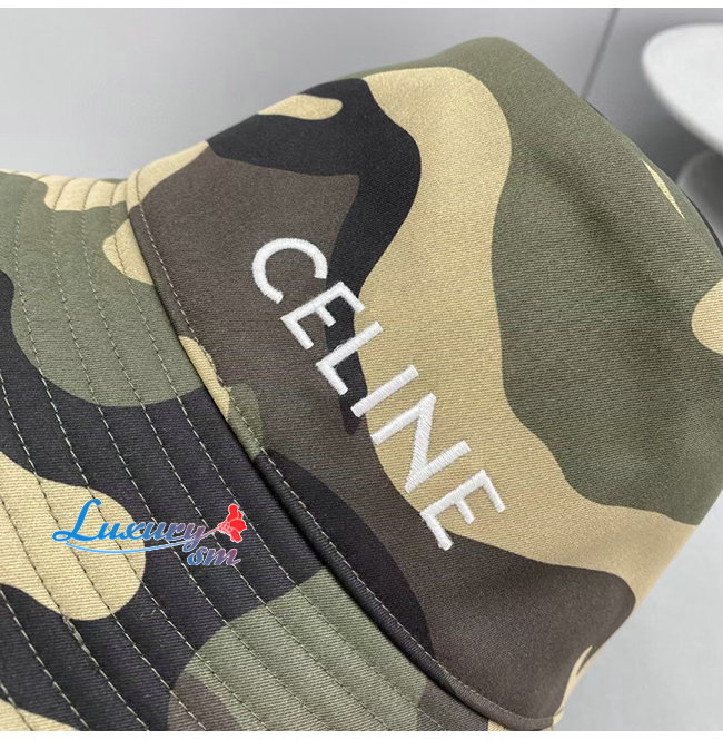 CELINE-102013 셀린느 카키 코튼 CELINE 아플리케 장식 카모플라주 버킷 햇 남여공용