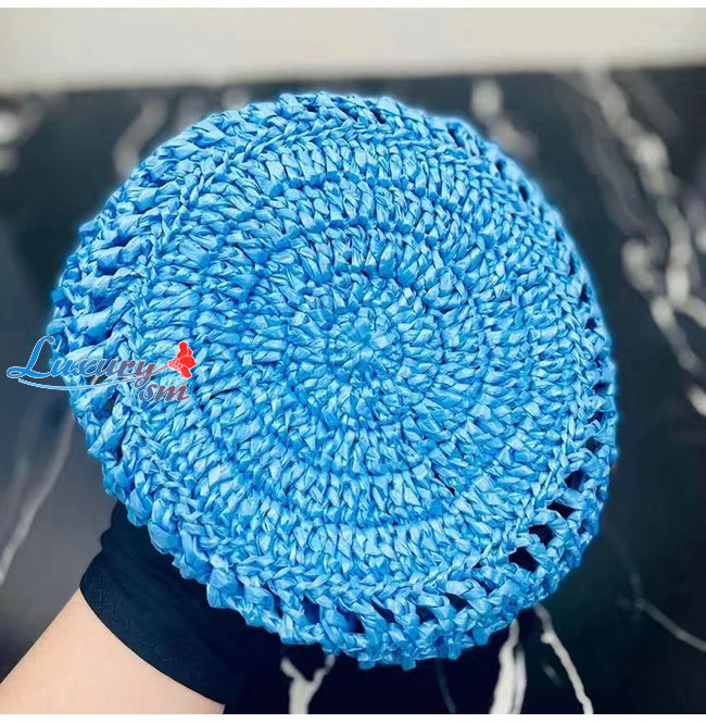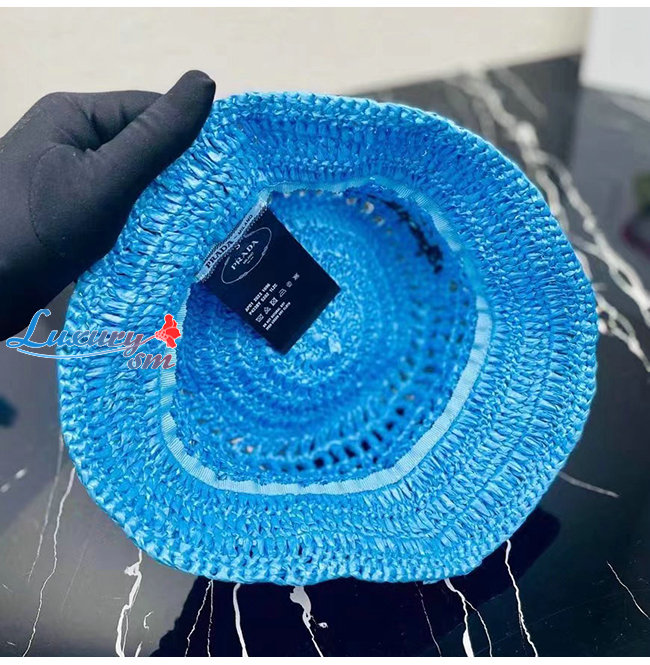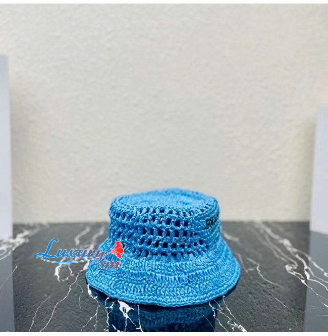 PRADA-1HC137 프라다 블루 라피아 버킷 햇 여성용
