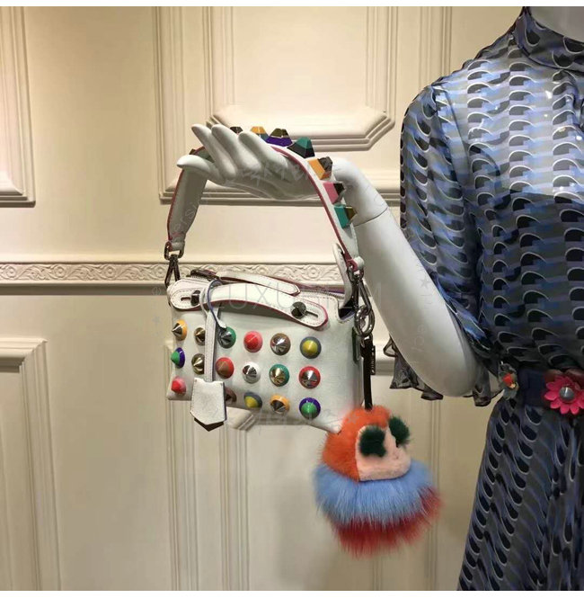 [스페셜오더]FENDI-8AV105O 펜디 송아지 가죽 멀티컬러 스터드 장식 화이트 미니 스트랩 유