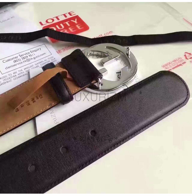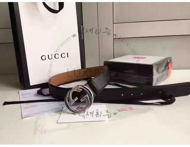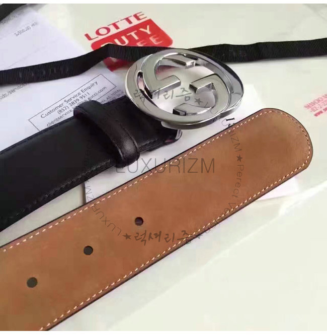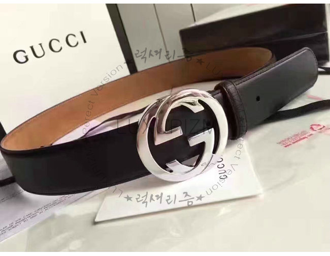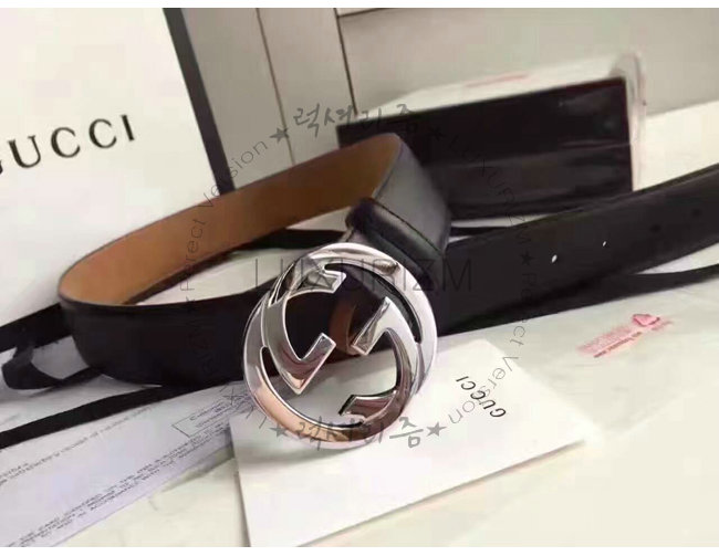 GUCCI-368186 1000 구찌 은장 인터로킹 G 버클 블랙 남성용 가죽 벨트