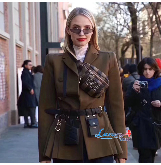 [스페셜오더]FENDI-8C0593 펜디 브라운/카키 더블 F 코튼 송아지 가죽 벨트 포켓