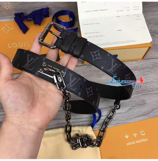 LOUIS VUITTON-M0179S 루이비통 모노그램 이클립스 시그니처 체인 벨트 35MM
