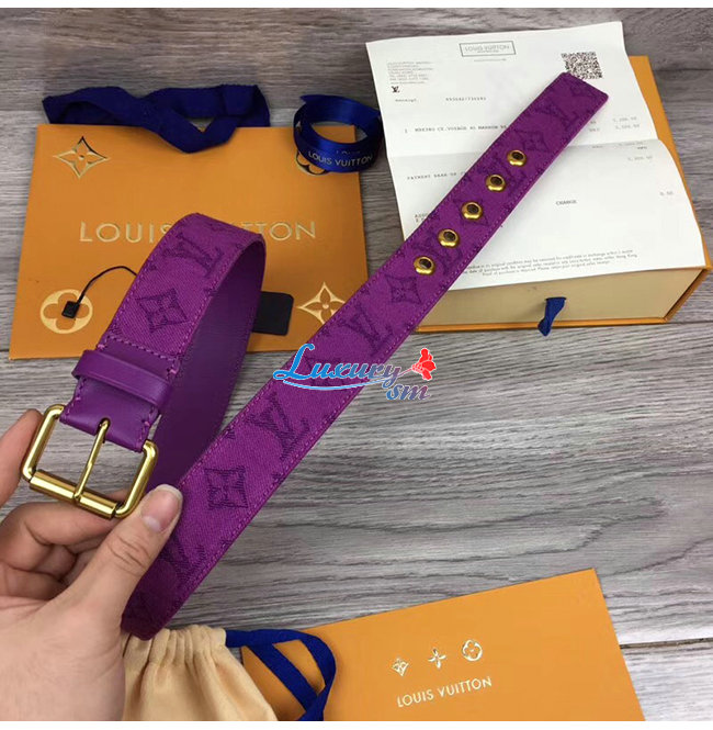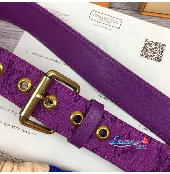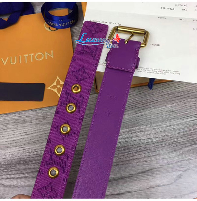 LOUIS VUITTON-M0177Q 루이비통 퍼플 모노그램 데님 시그니처 벨트 35MM