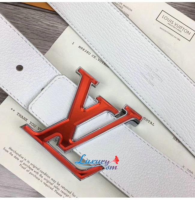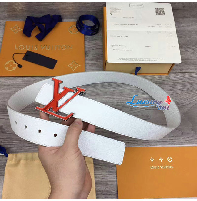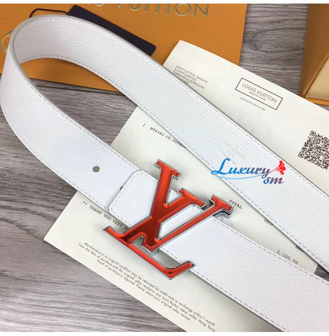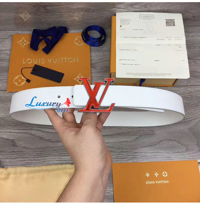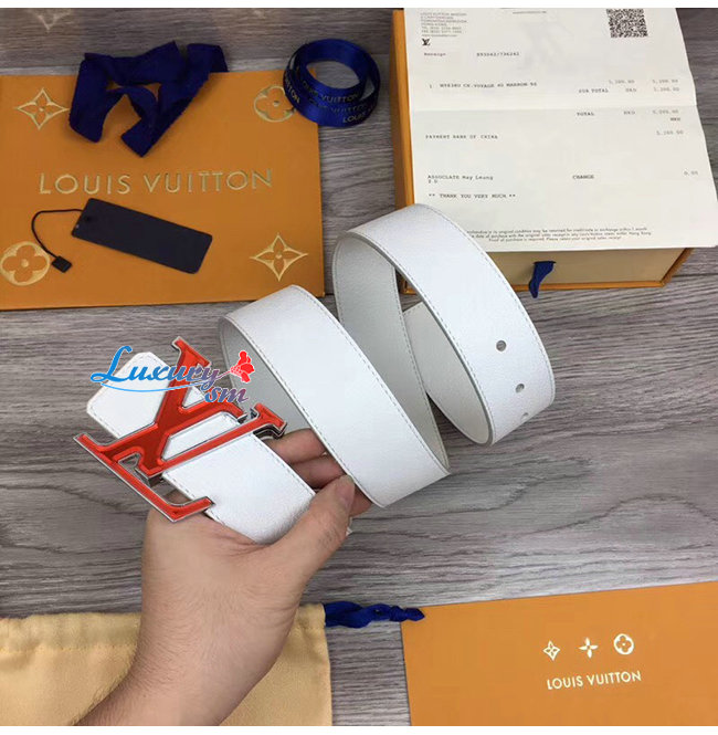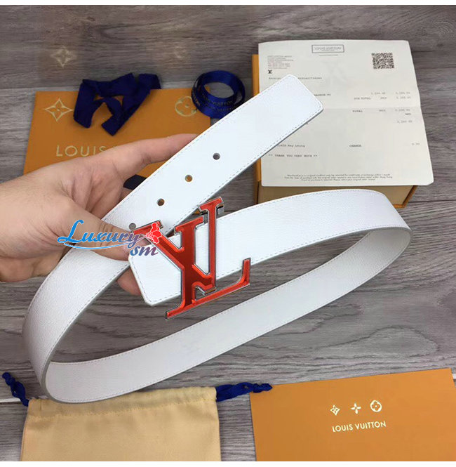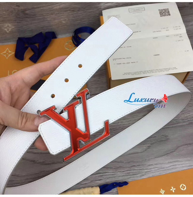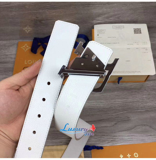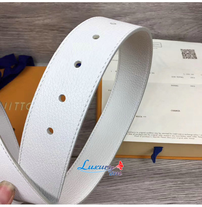 LOUIS VUITTON-M0165W 루이비통 화이트 송아지 가죽 LV 프리즘 벨트 40MM