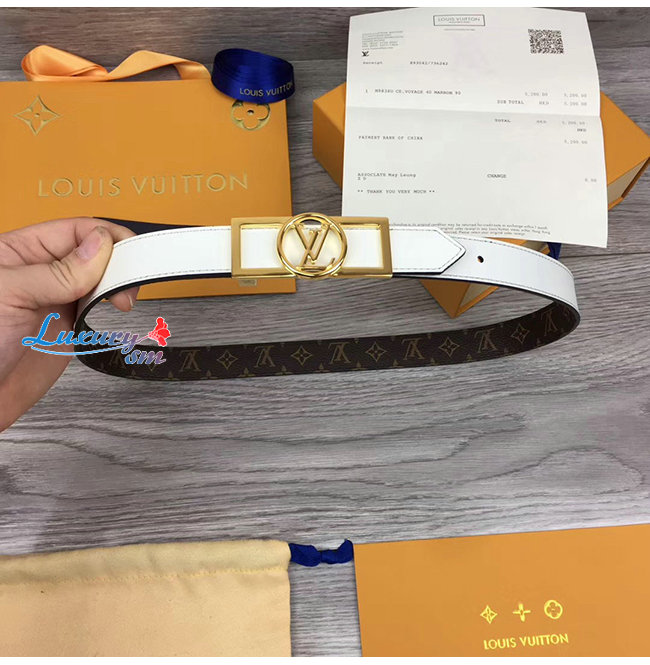 LOUIS VUITTON-M0208U 루이비통 모노그램 화이트 송아지 가죽 도핀 리버서블 벨트 25MM