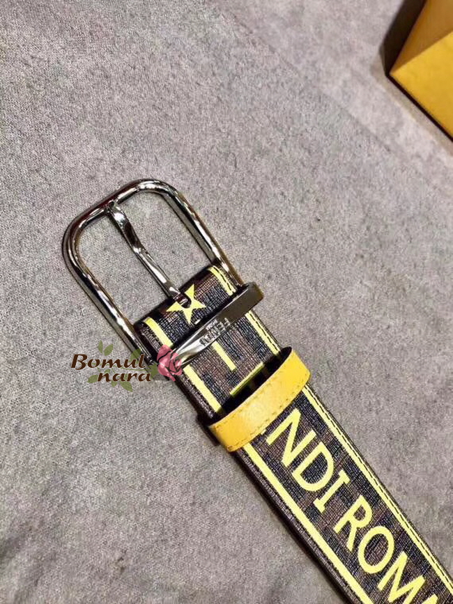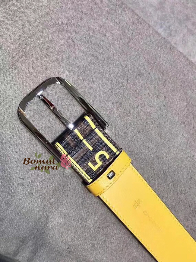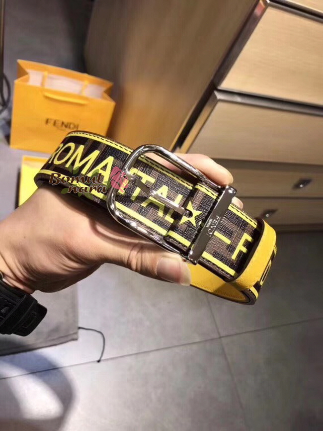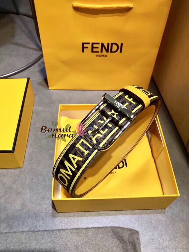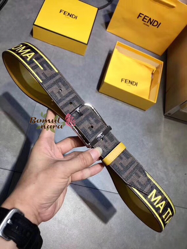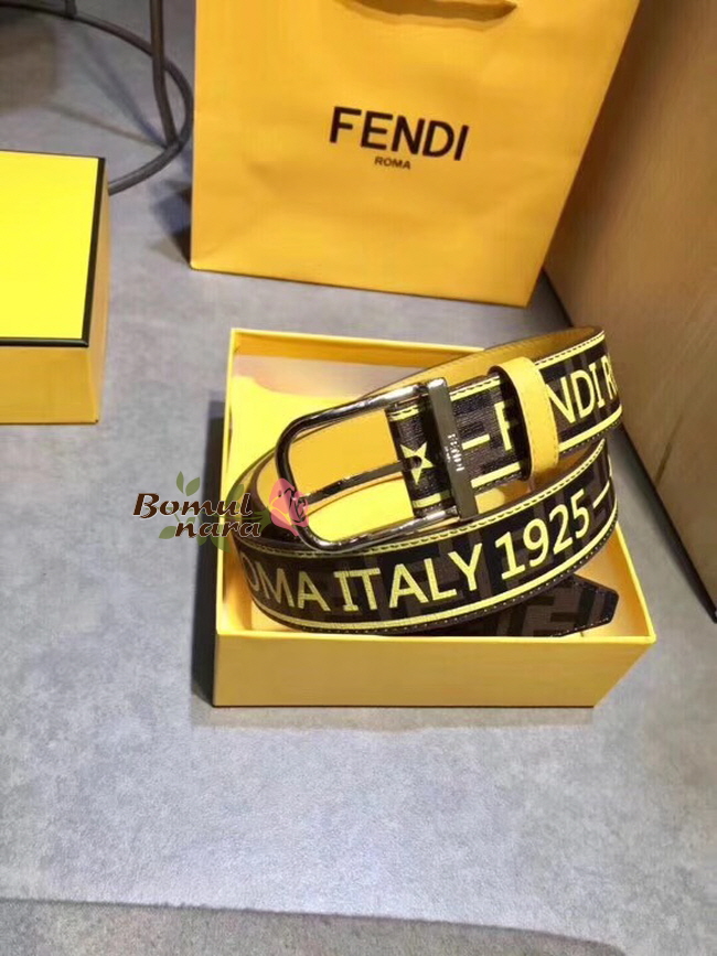 FENDI-7C0392 팬디 브라운 PU 펜디 라벨 프린트 장식 남성용 벨트