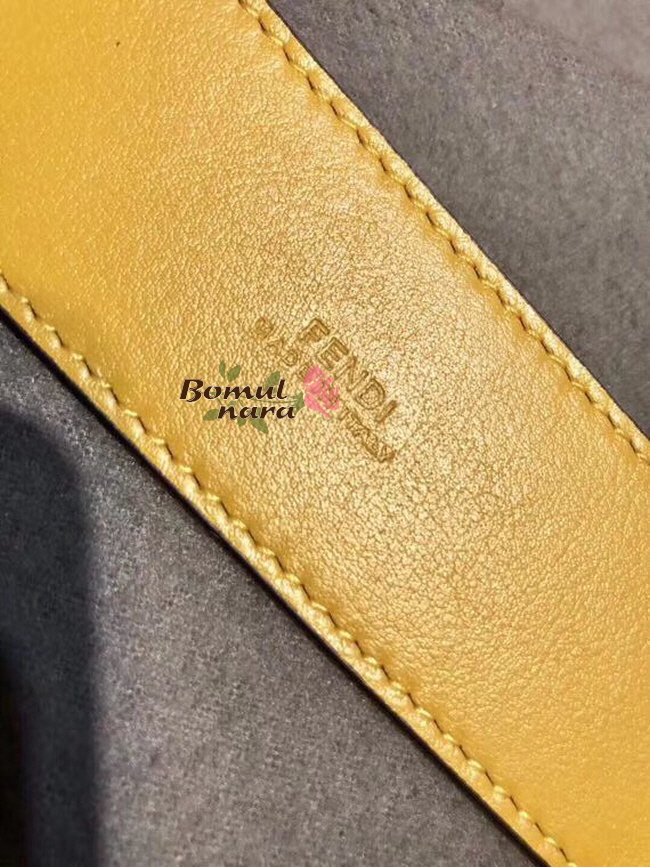 브라운 컬러의 FF 모티프/옐로우 컬러의 Fendi 라벨