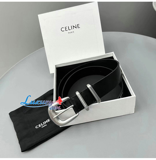 CELINE-09301 셀린느 블랙 카프스킨 CELINE 프린트 장식 벨트 남여공용