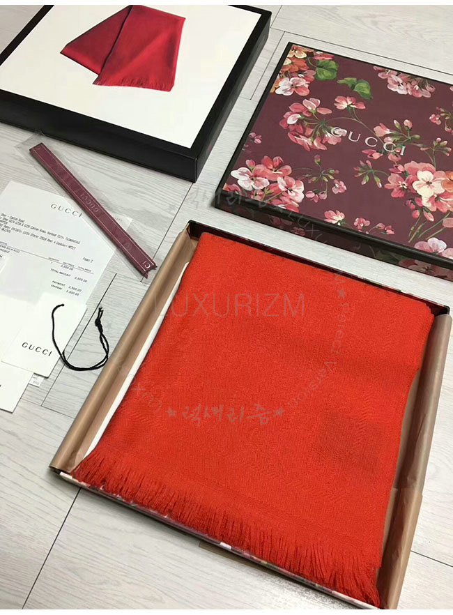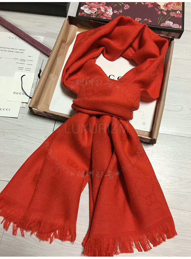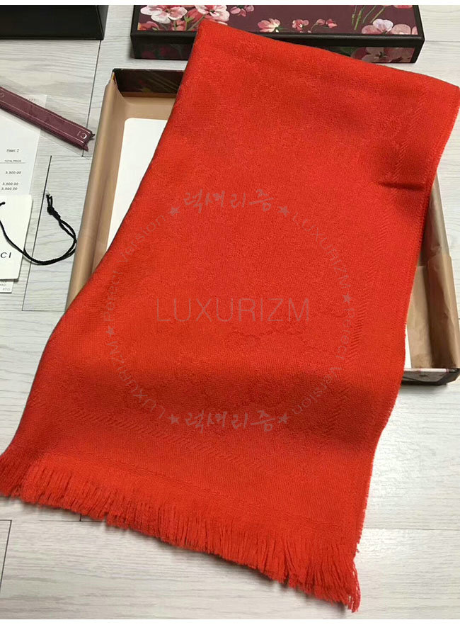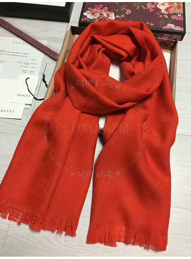 GUCCI-133483 5496 구찌 레드 자카드 패턴 니트 스카프 여성용