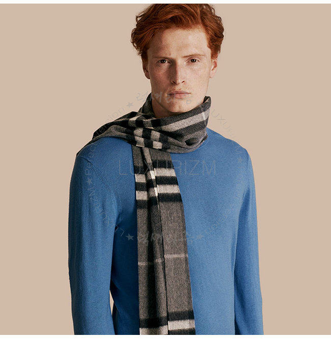 BURBERRY-39137311 버버리 클래식 차콜 체크 캐시미어 스카프 남녀공용