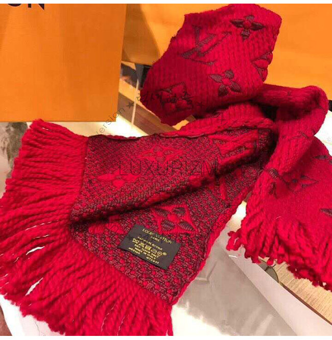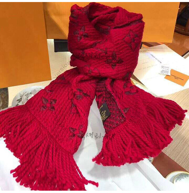 LOUIS VUITTON-M72432 루이비통 레드 울 로고마니아 스카프