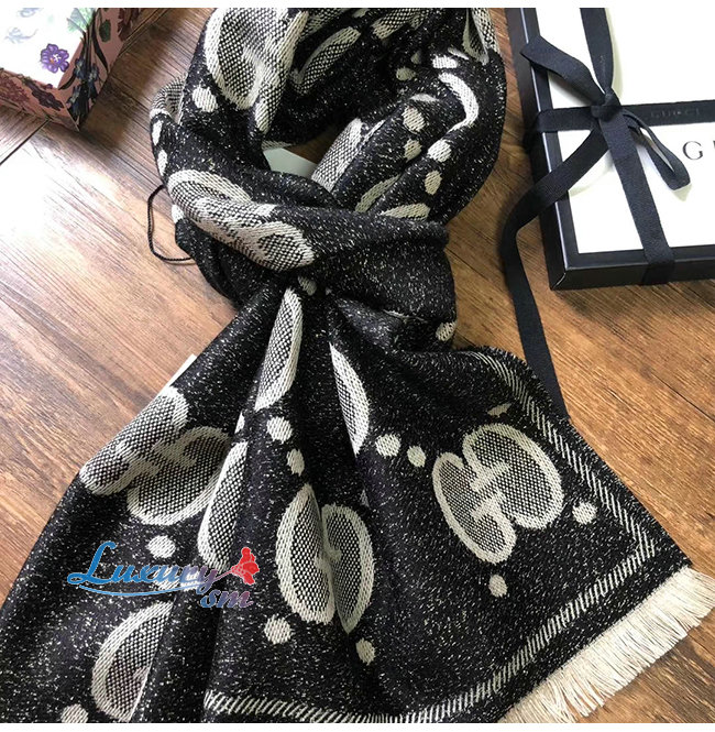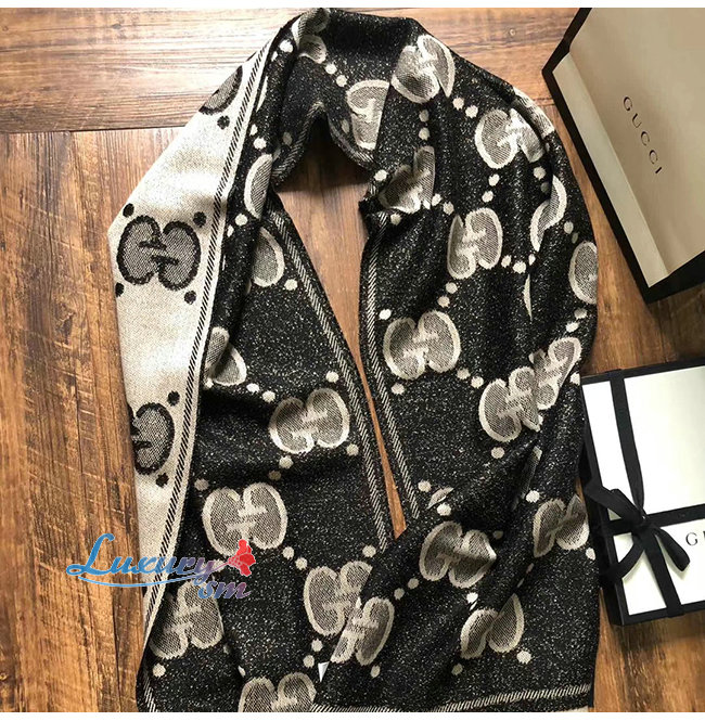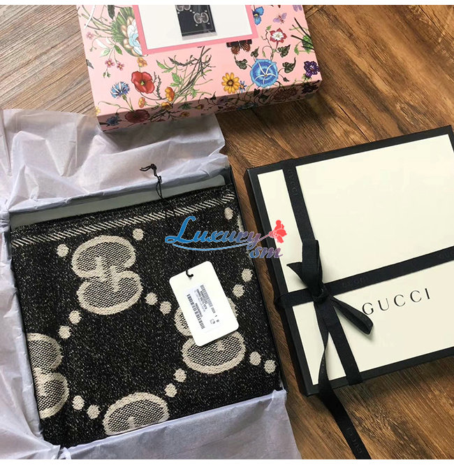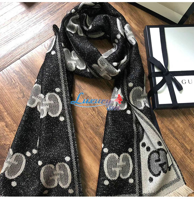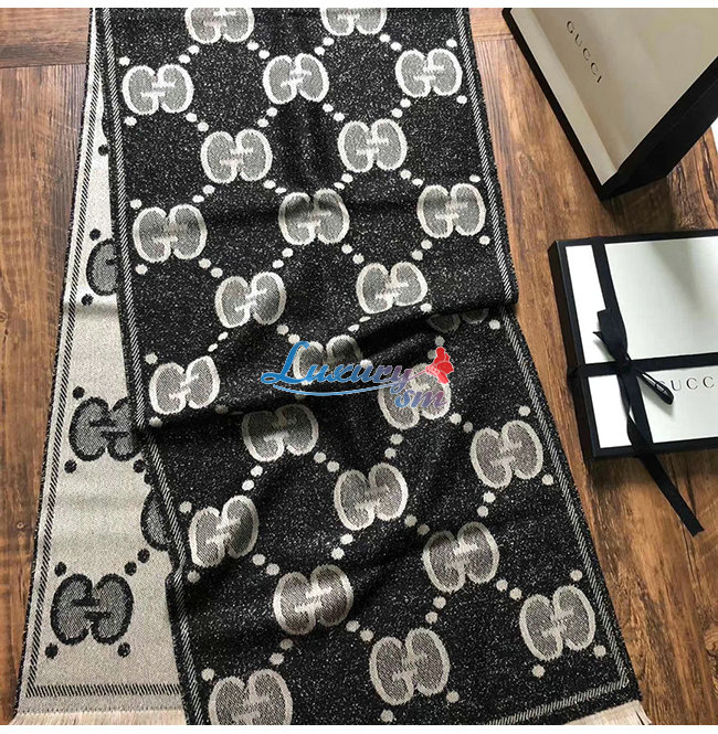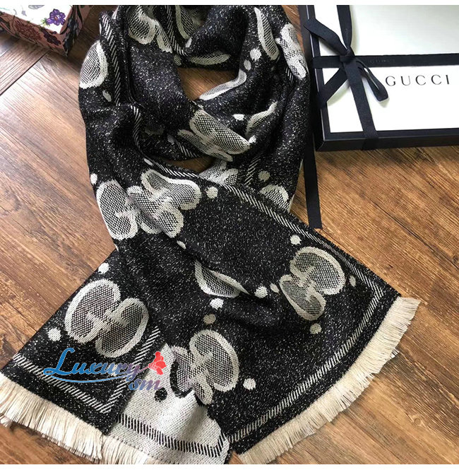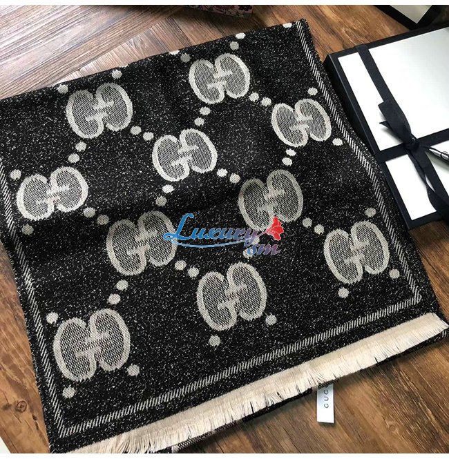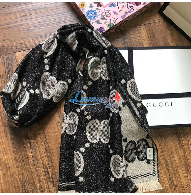 GUCCI-598189 1460 구찌 블랙/그레이 GG 울 자카드 스카프