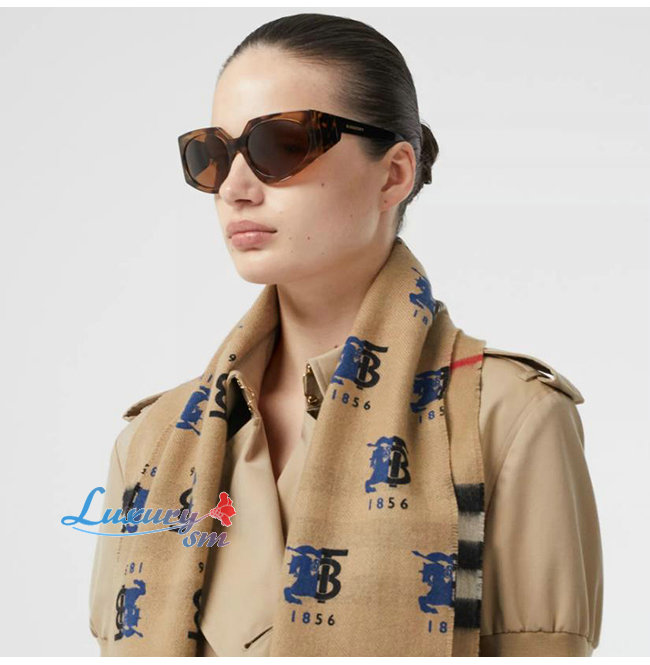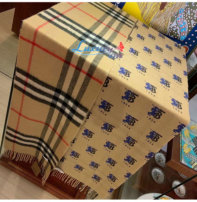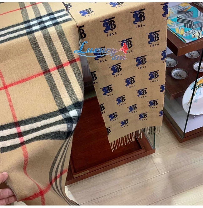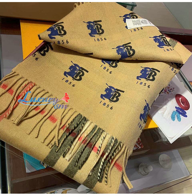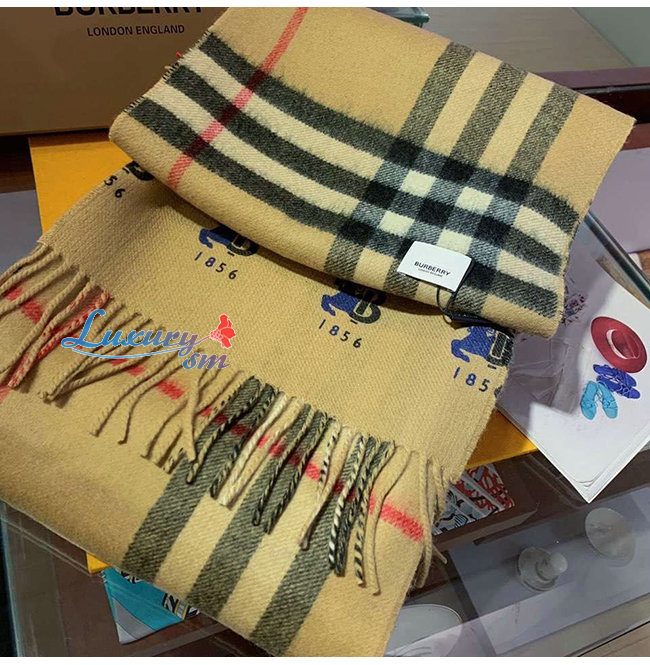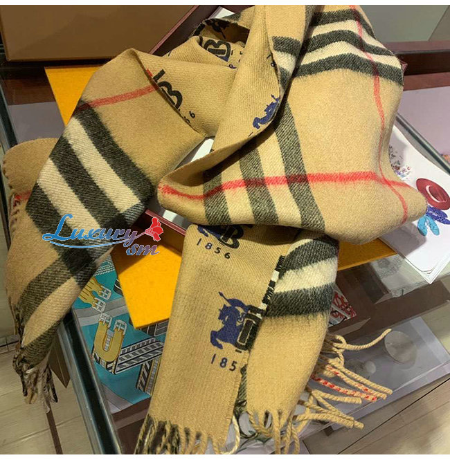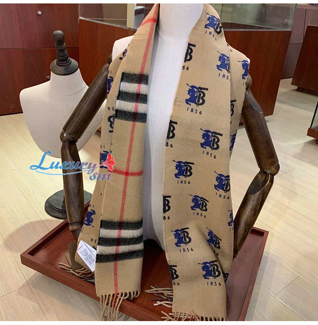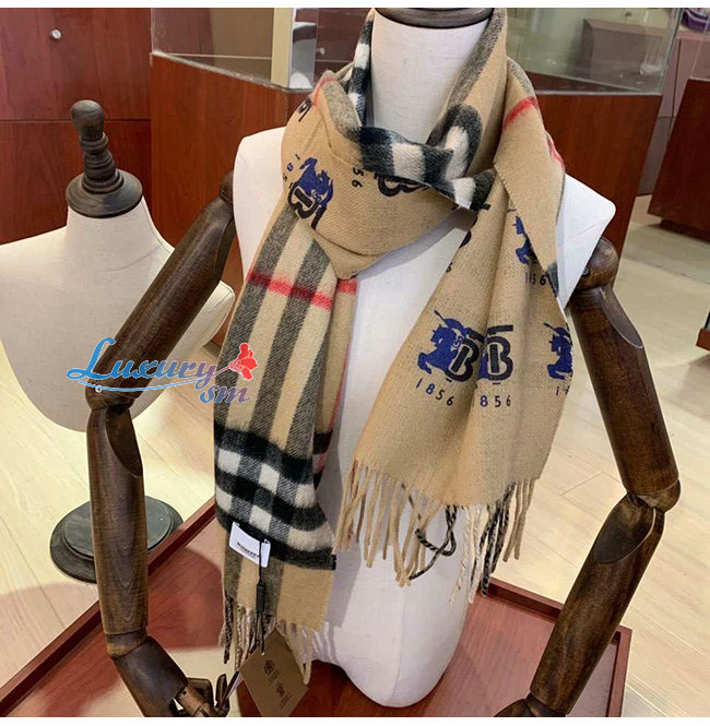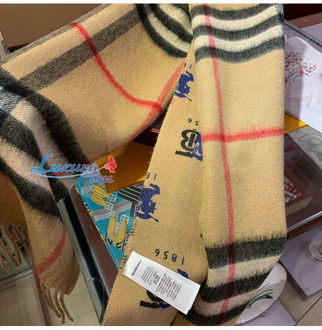 BURBERRY-80258161 버버리 베이지 컨트라스트 로고 그래픽 체크 캐시미어 스카프