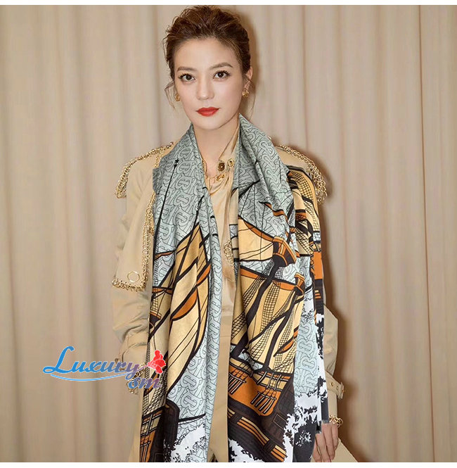 BURBERRY-80212861 버버리 쉽 프린트 실크 트윌 스퀘어 스카프