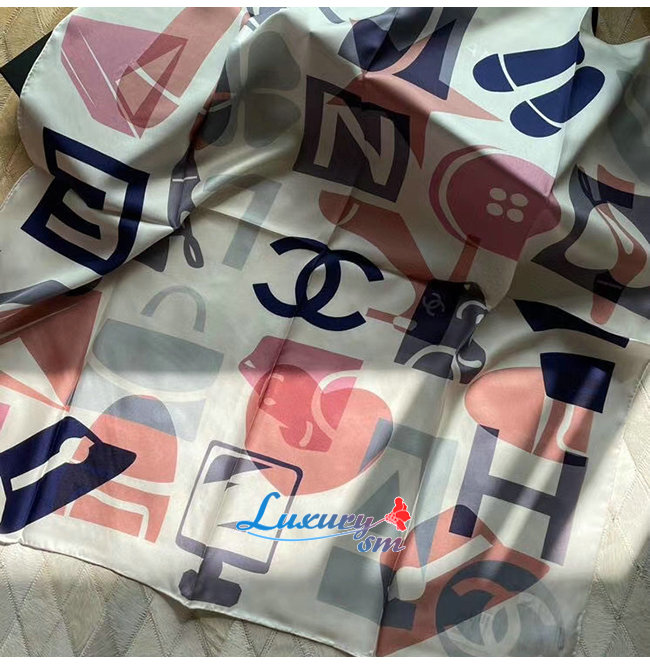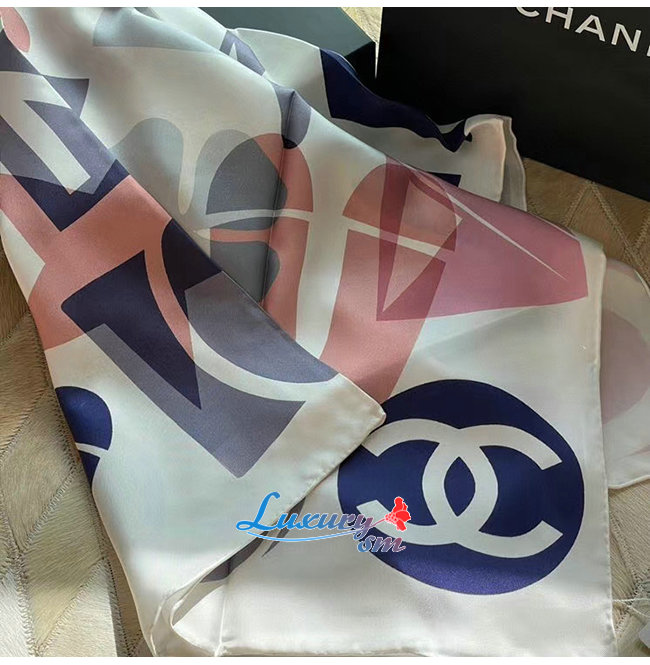 CHANEL-AA7367 샤넬 에크루/베이지 실크 트윌 스퀘어 스카프