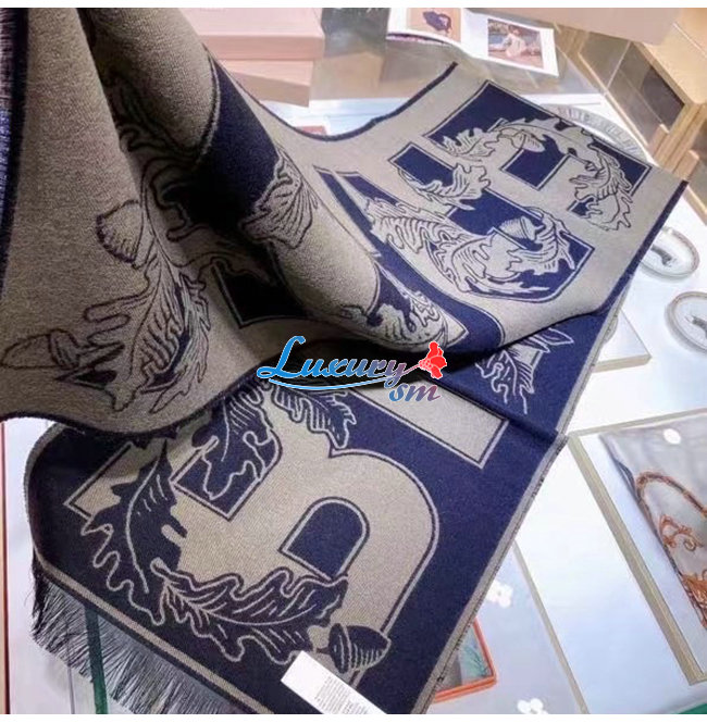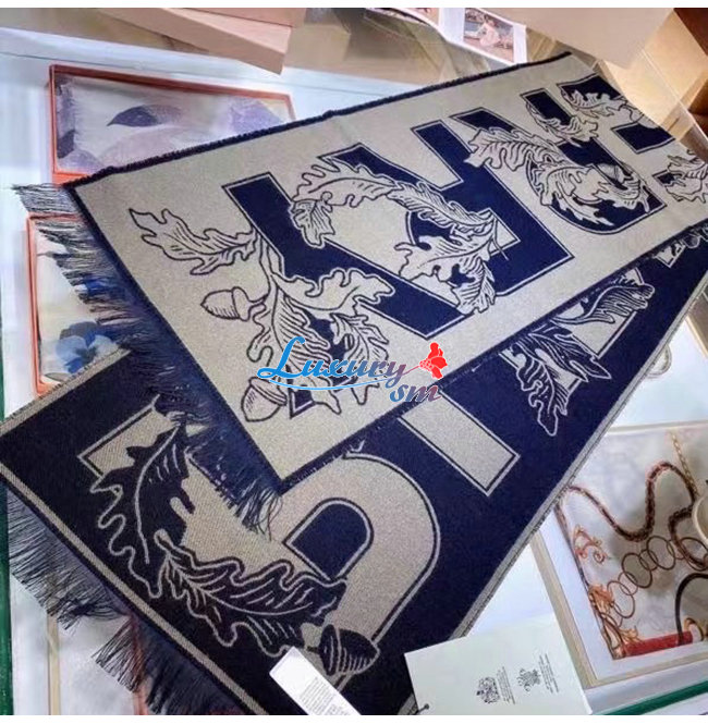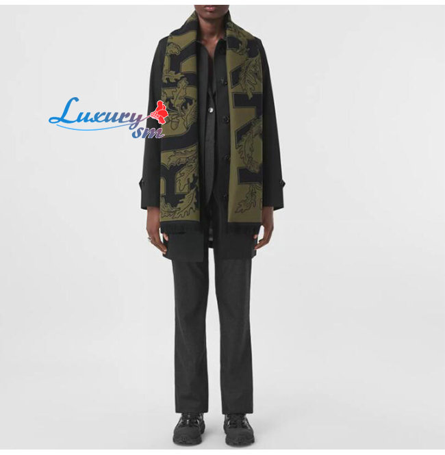 BURBERRY-80457921 버버리 다크 펀 그린 아카이브 로고 울 실크 자카드 스카프