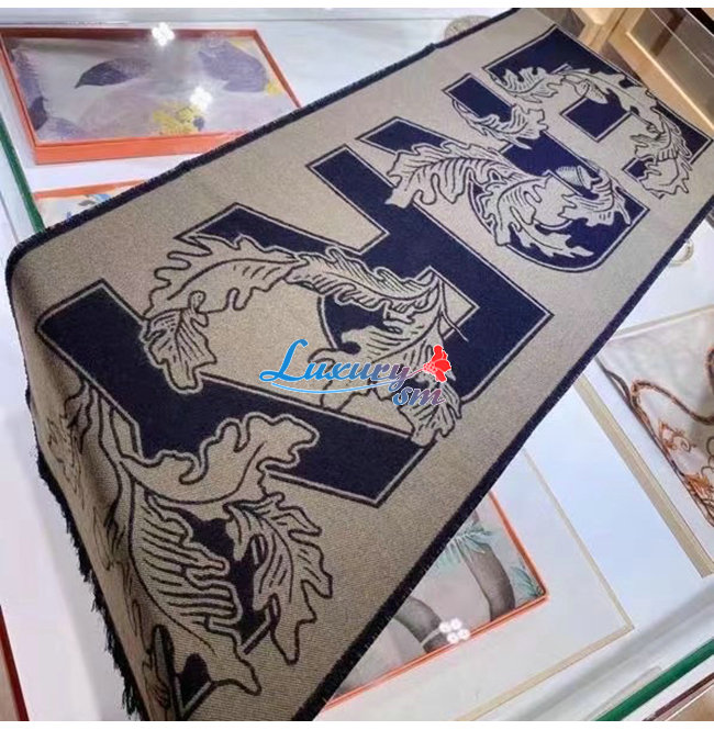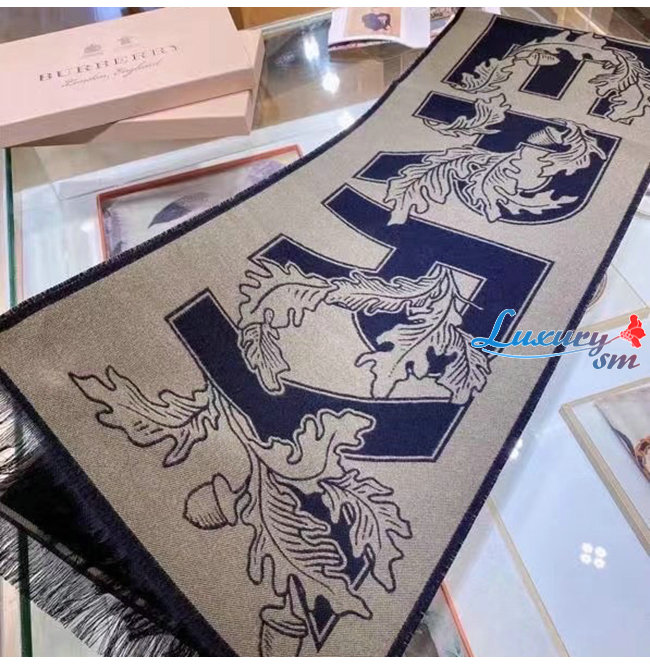 BURBERRY-80457931 버버리 버치 브라운 아카이브 로고 울 실크 자카드 스카프