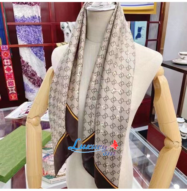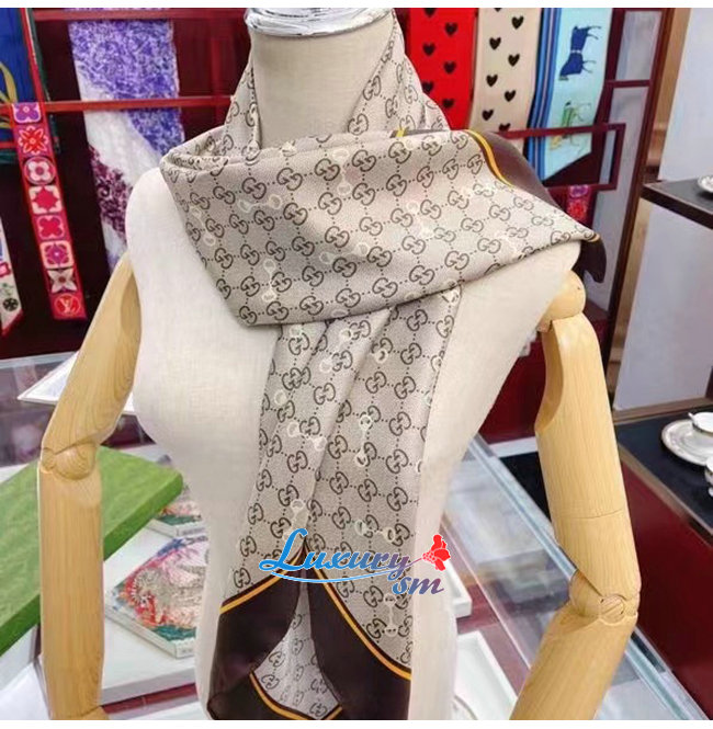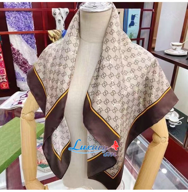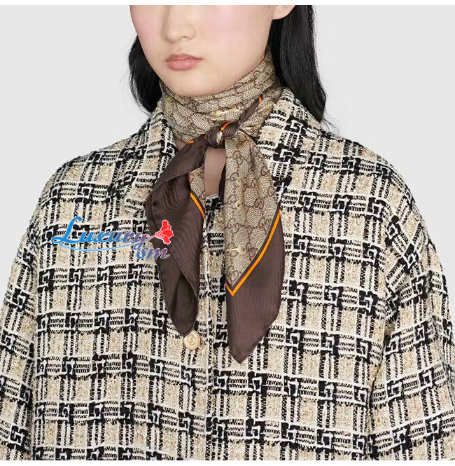GUCCI-662576 2276 구찌 브라운 GG 프린트 홀스빗 실크 스카프