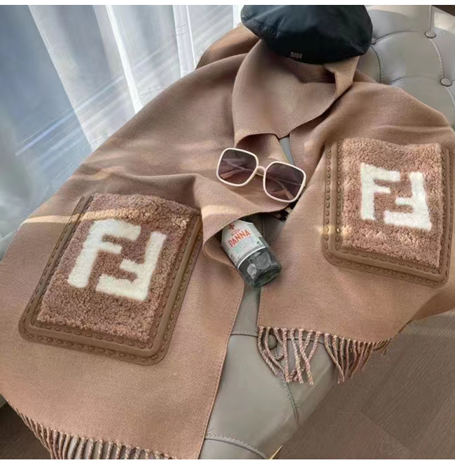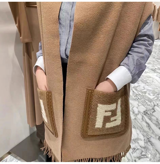 FENDI-FXT339 펜디 브라운 울 캐시미어 FF 스카프