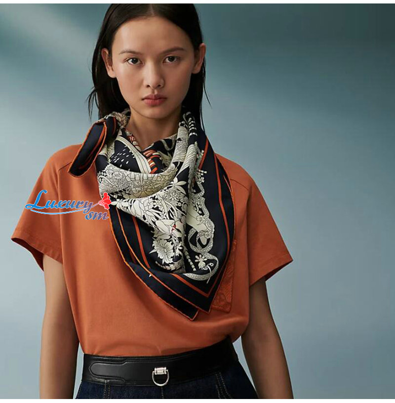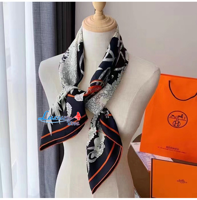 HERMES-H003903 에르메스 네이비/화이트 Le Sacre des Saisons 스카프