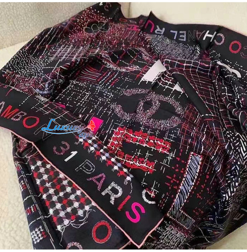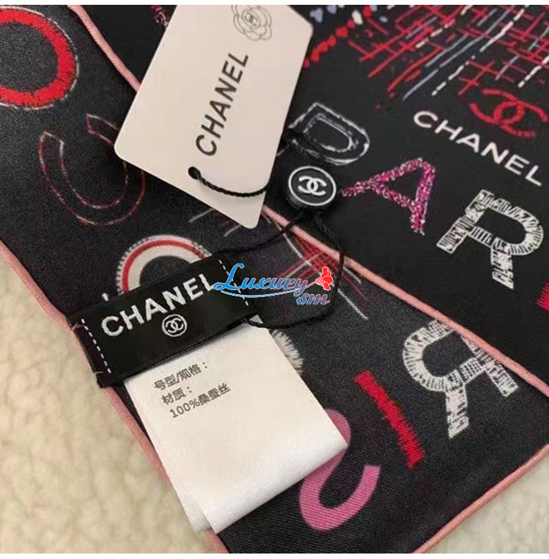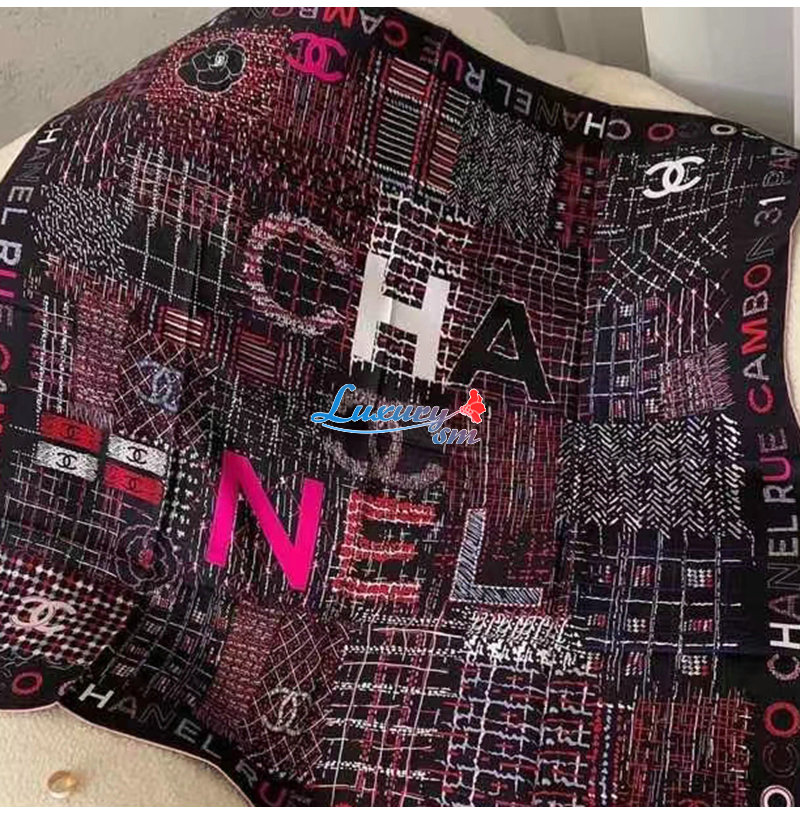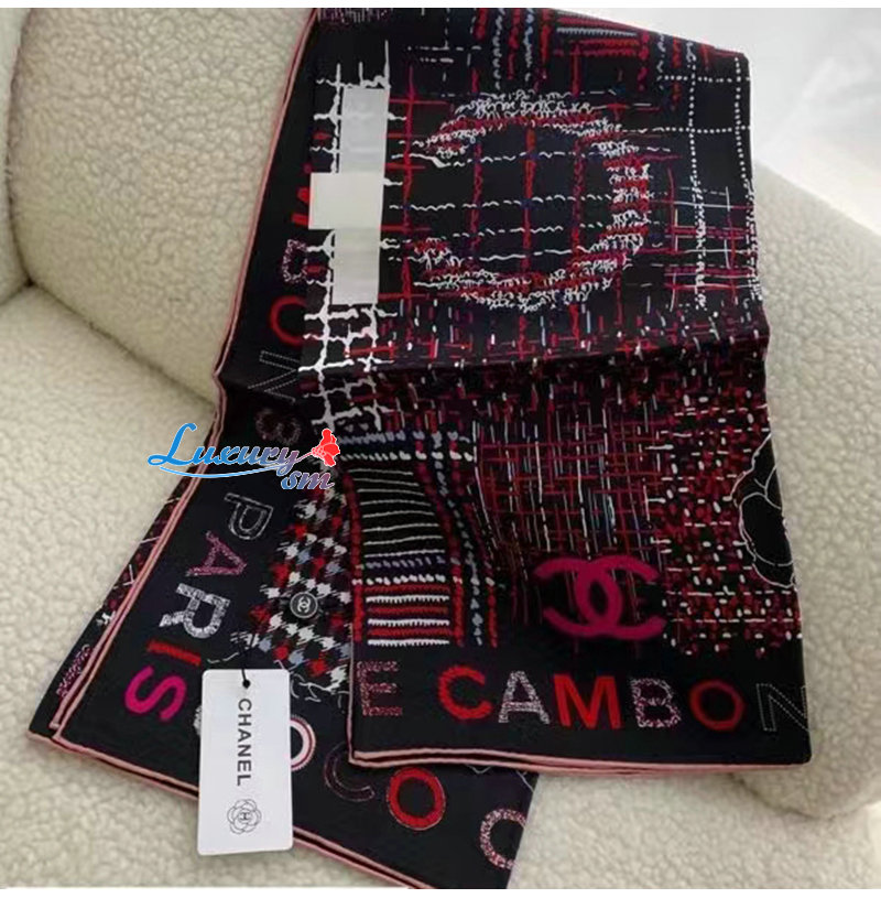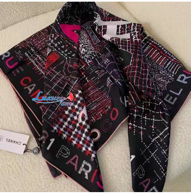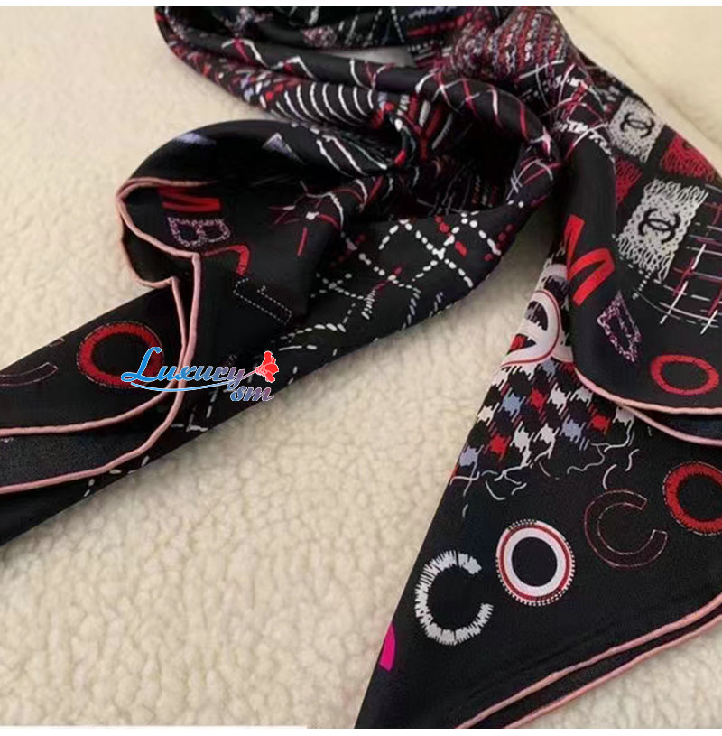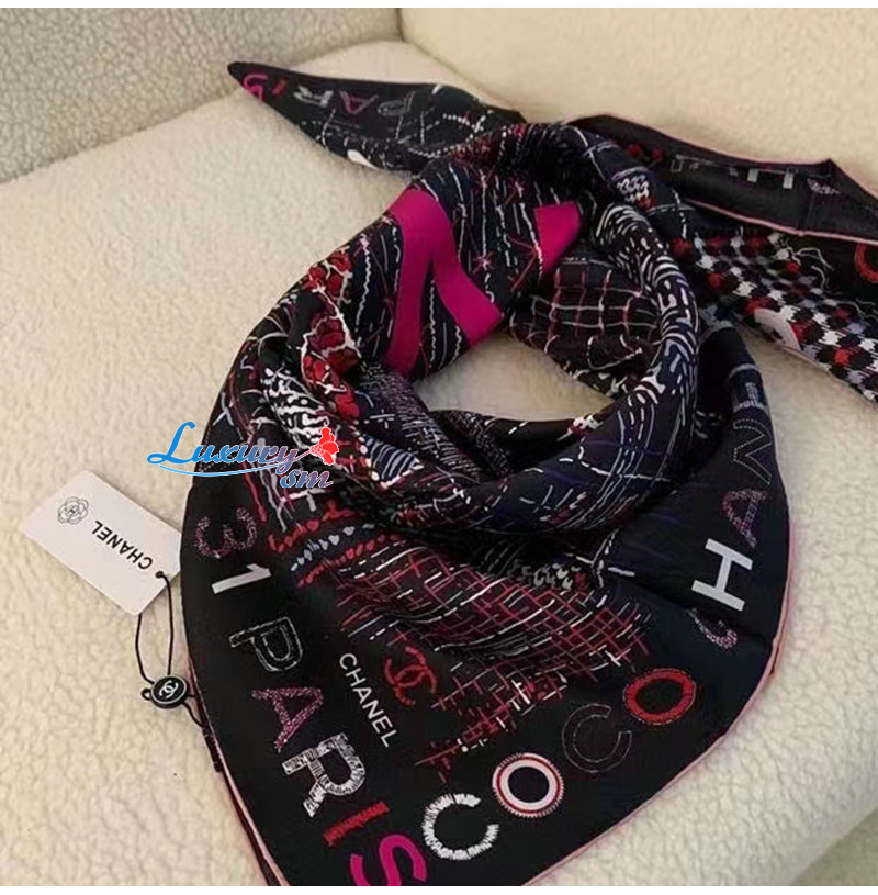 CHANEL-AA8619 샤넬 블랙 실크 트윌 스퀘어 스카프