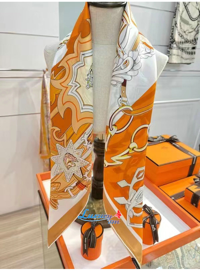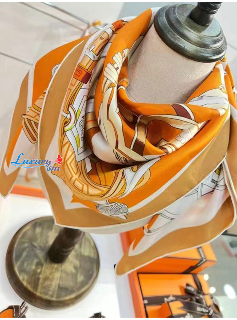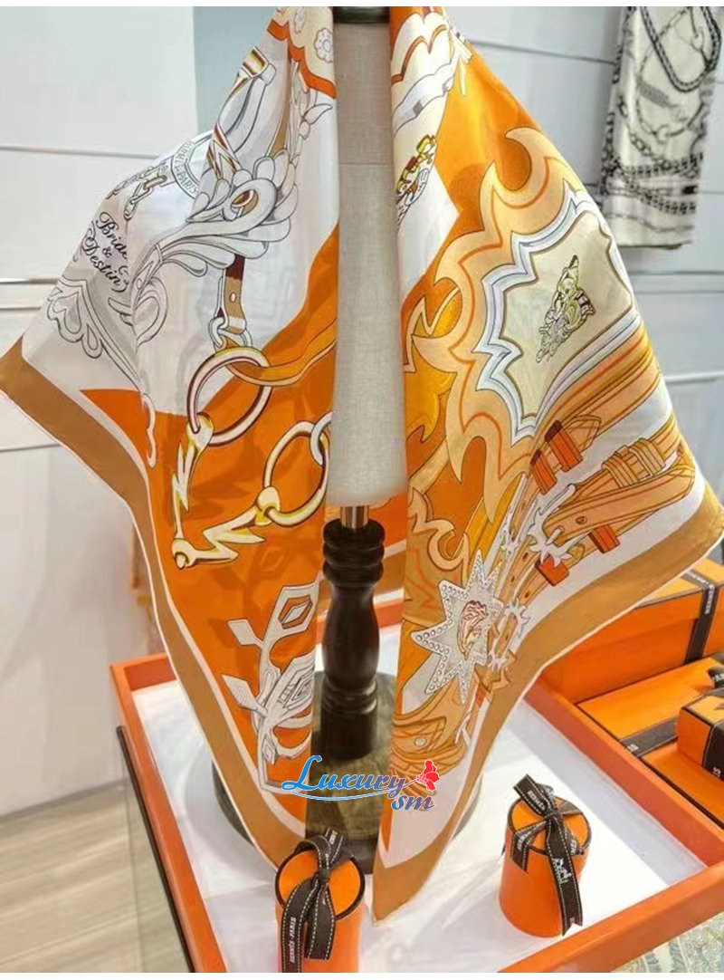 HERMES-H003967 에르메스 오렌지 Brides et Destin 스카프