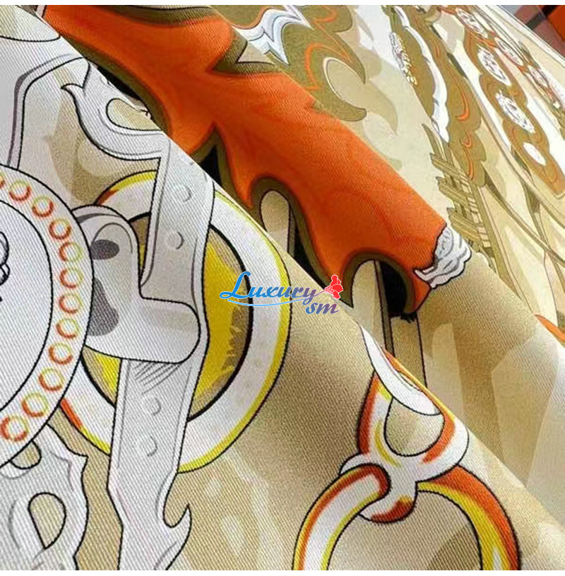 HERMES-H003967 에르메스 오렌지/그레이 Brides et Destin 스카프
