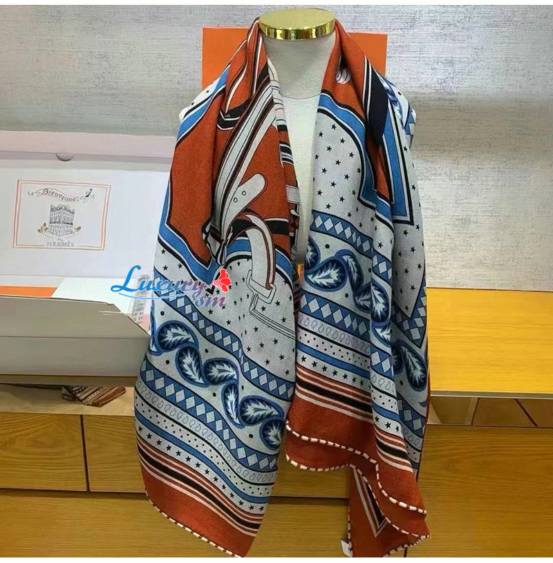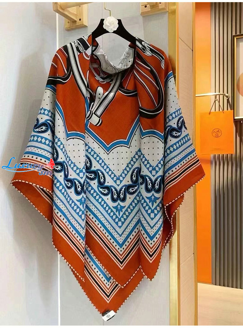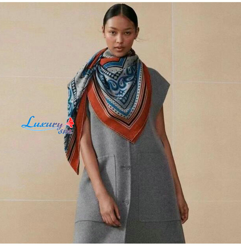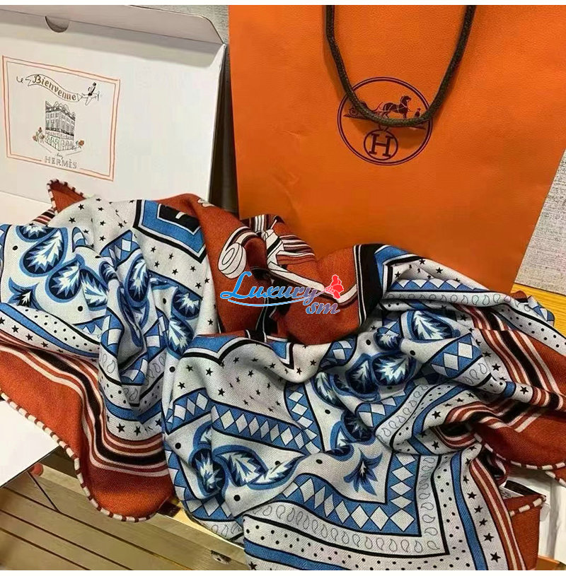 HERMES-H244170S 에르메스 오렌지 Les Roues de Phaeton Bandana 숄140 가격 : 210,000원