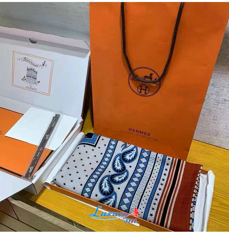 HERMES-H244170S 에르메스 블루 Les Roues de Phaeton Bandana 숄140 가격 : 210,000원