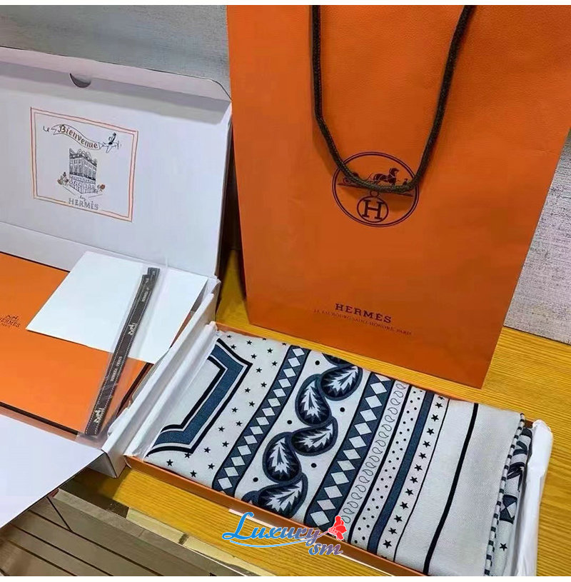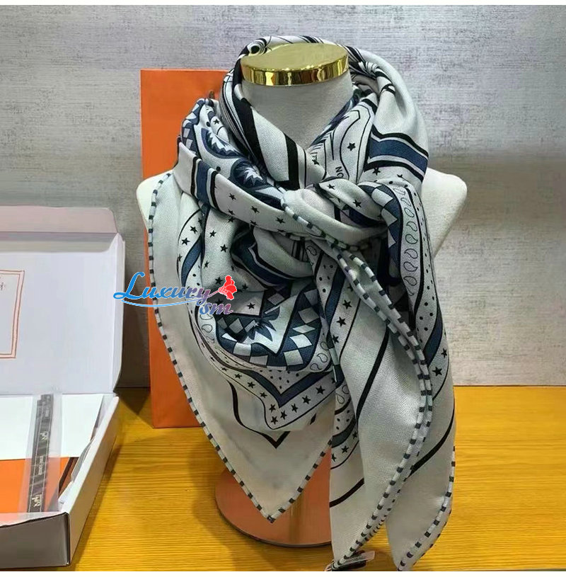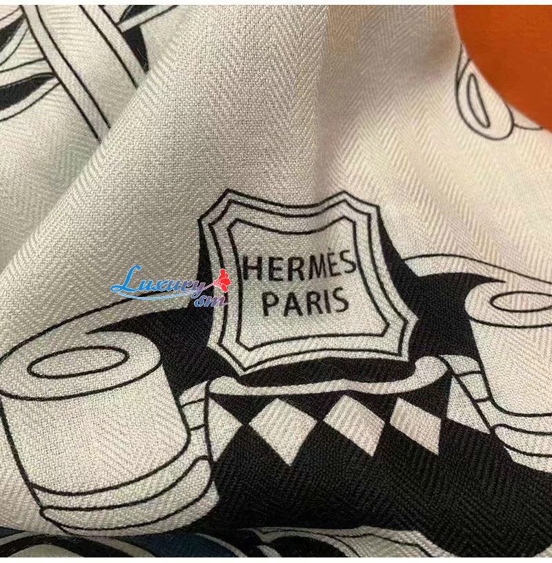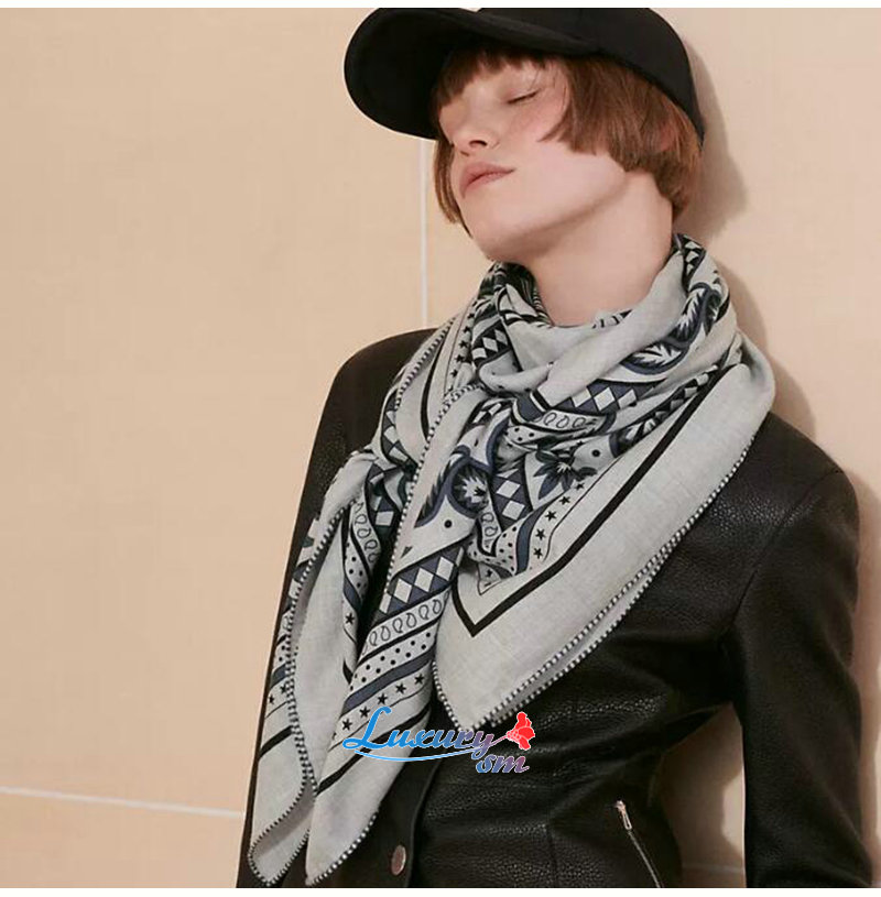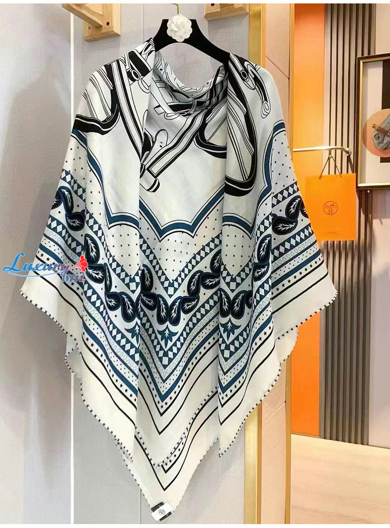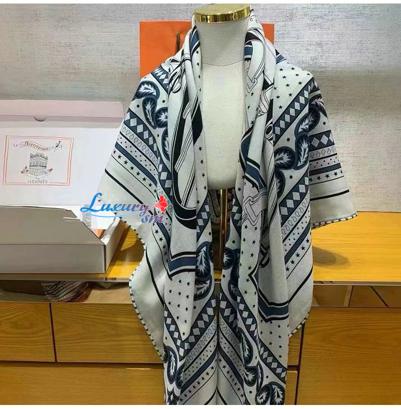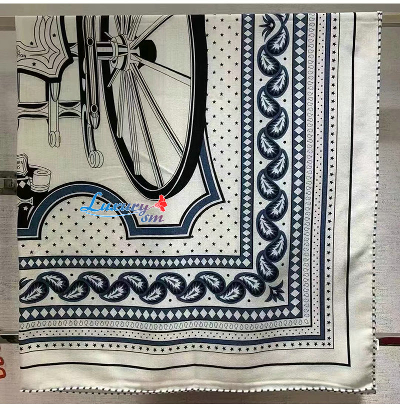 HERMES-H244170S 에르메스 네이비 Les Roues de Phaeton Bandana 숄140
