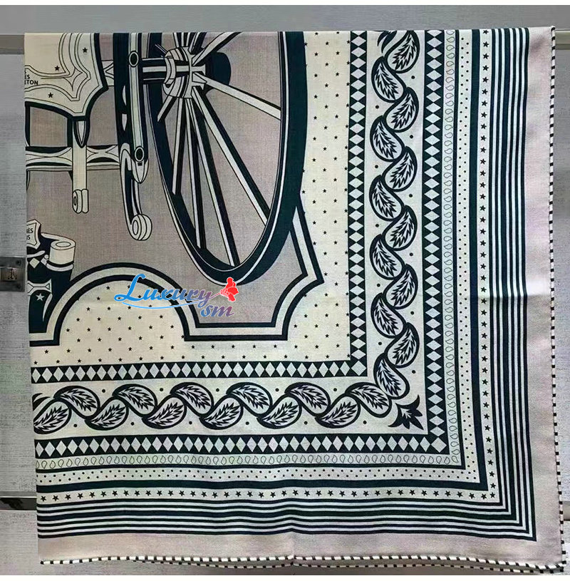 HERMES-H244170S 에르메스 네이비 Les Roues de Phaeton Bandana 숄140