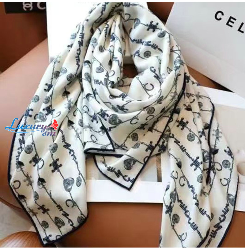 CHANEL-11181 샤넬 화이트 실크 스카프