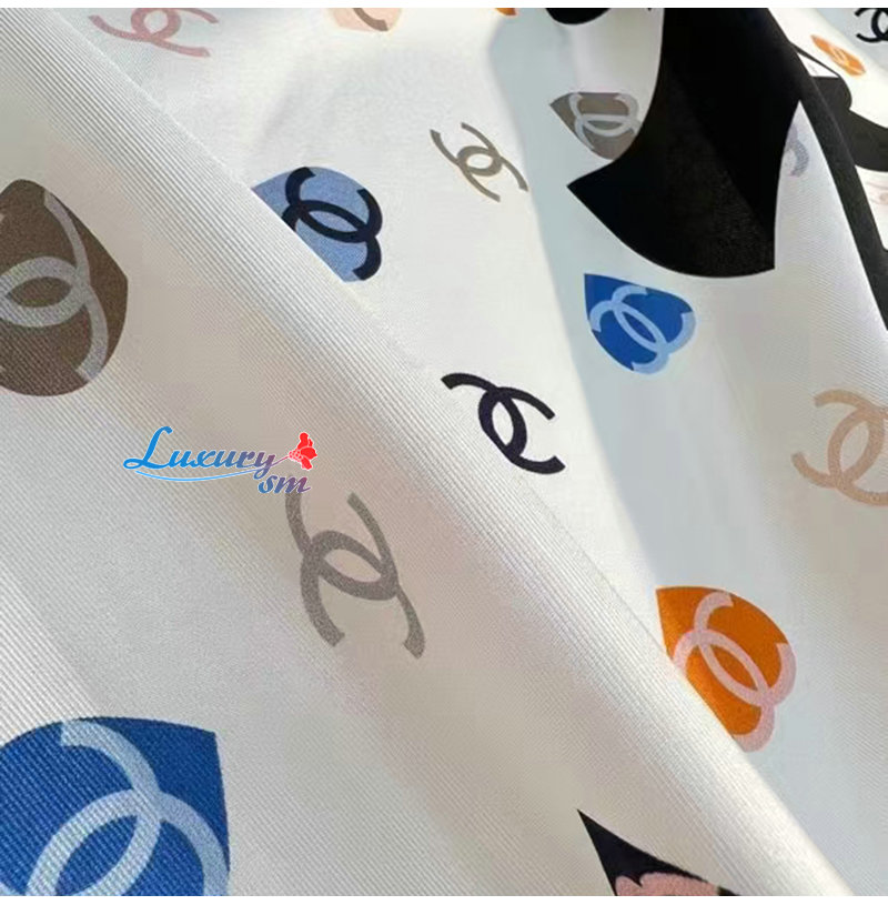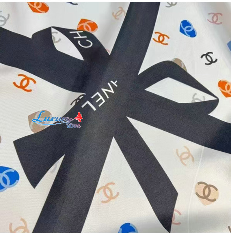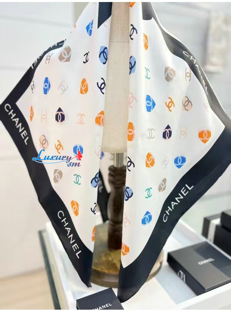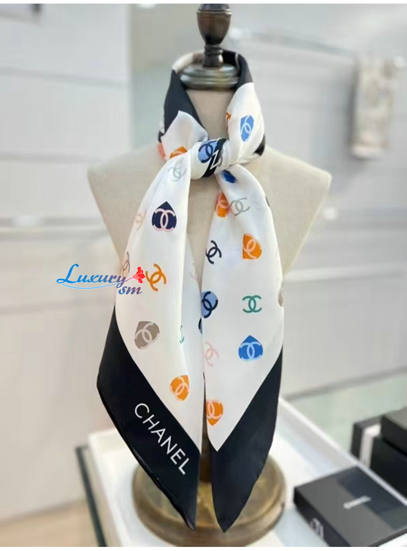 CHANEL-02208 샤넬 화이트 CC 로고 실크 스카프