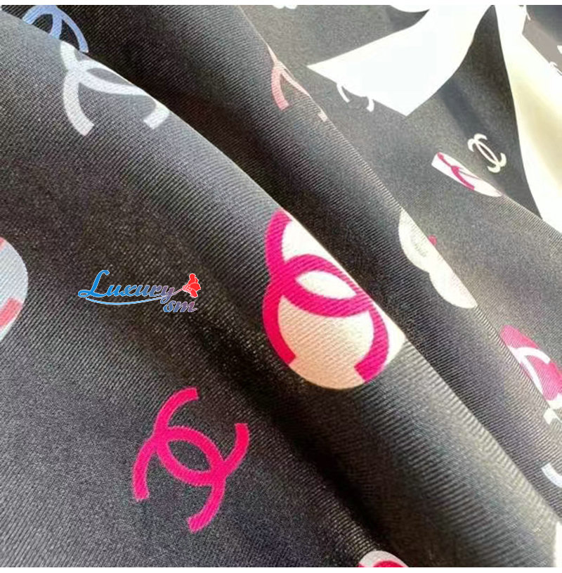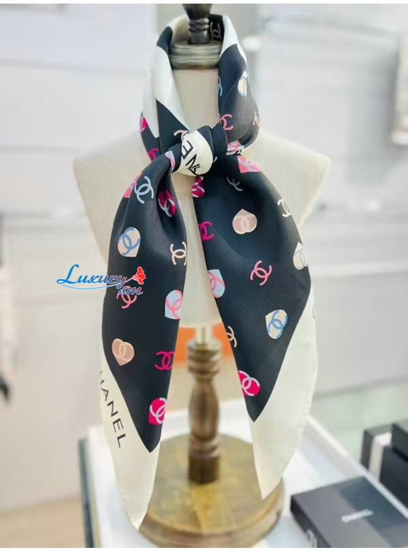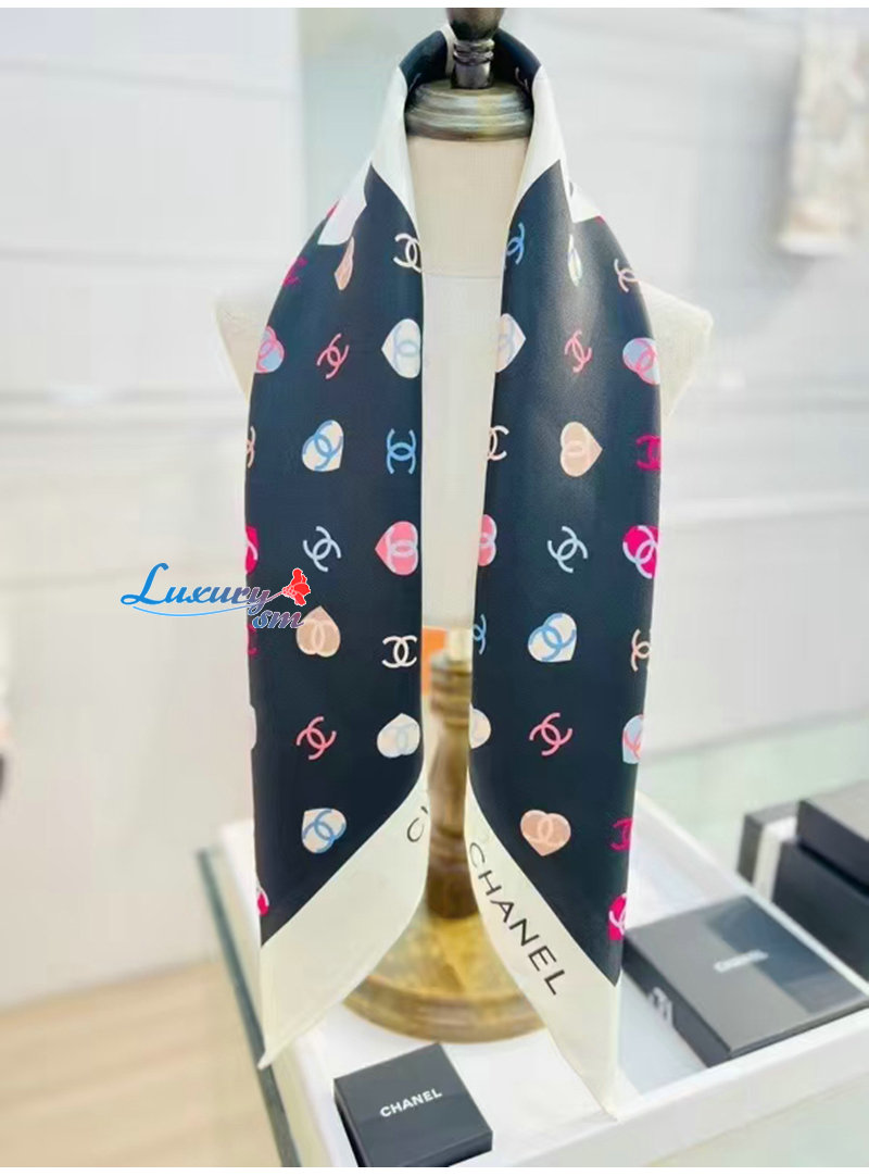CHANEL-022010 샤넬 블랙 CC 로고 실크 스카프