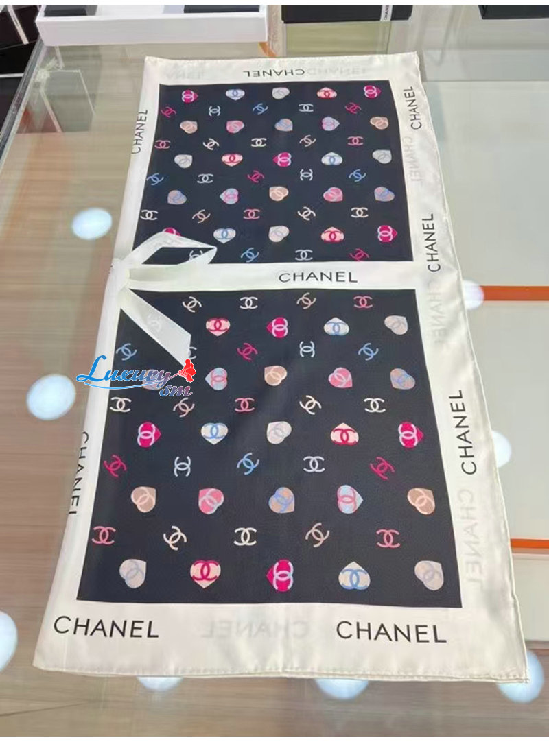 CHANEL-02208 샤넬 화이트 CC 로고 실크 스카프 가격 : 160,000원