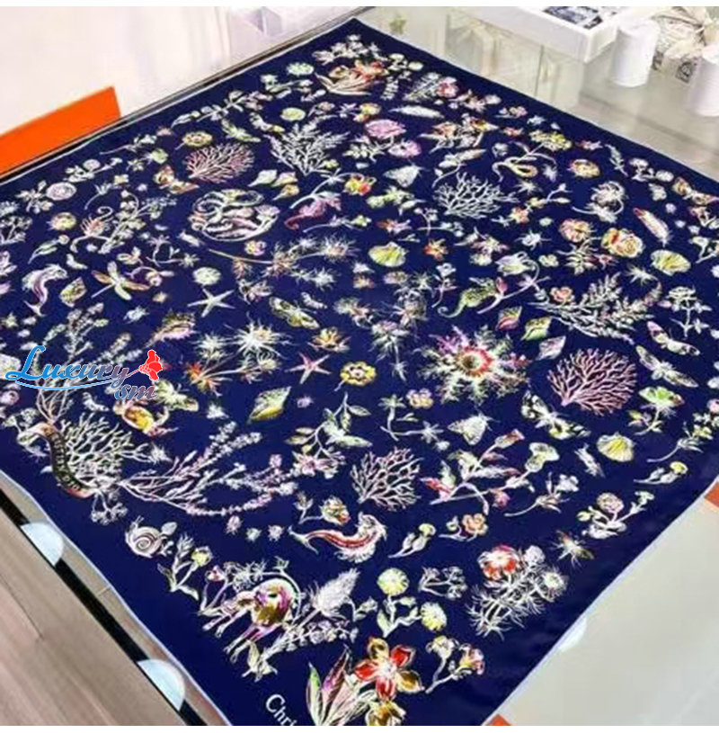 DIOR-51CAB0 디올 네이비 Dior Cabinet de Curiosites 스퀘어 스카프