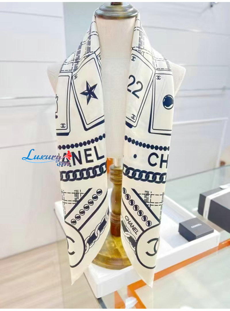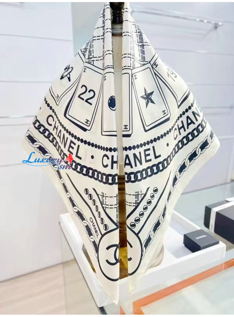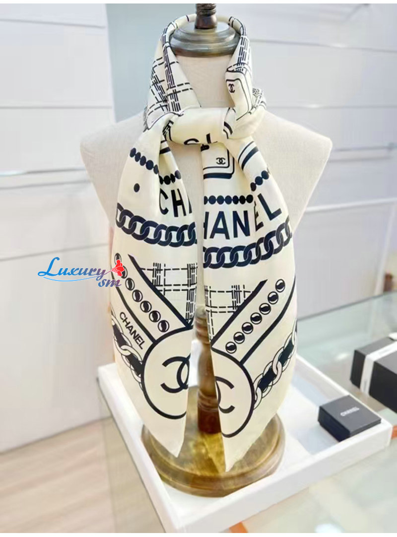 CHANEL-02195 샤넬 화이트 실크 스카프